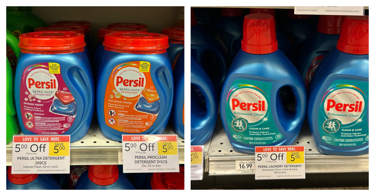 Persil Laundry Detergent, 100 or 150 oz, or 32, 40, or 42 ct, $5 Off, $14.99 – $16.99