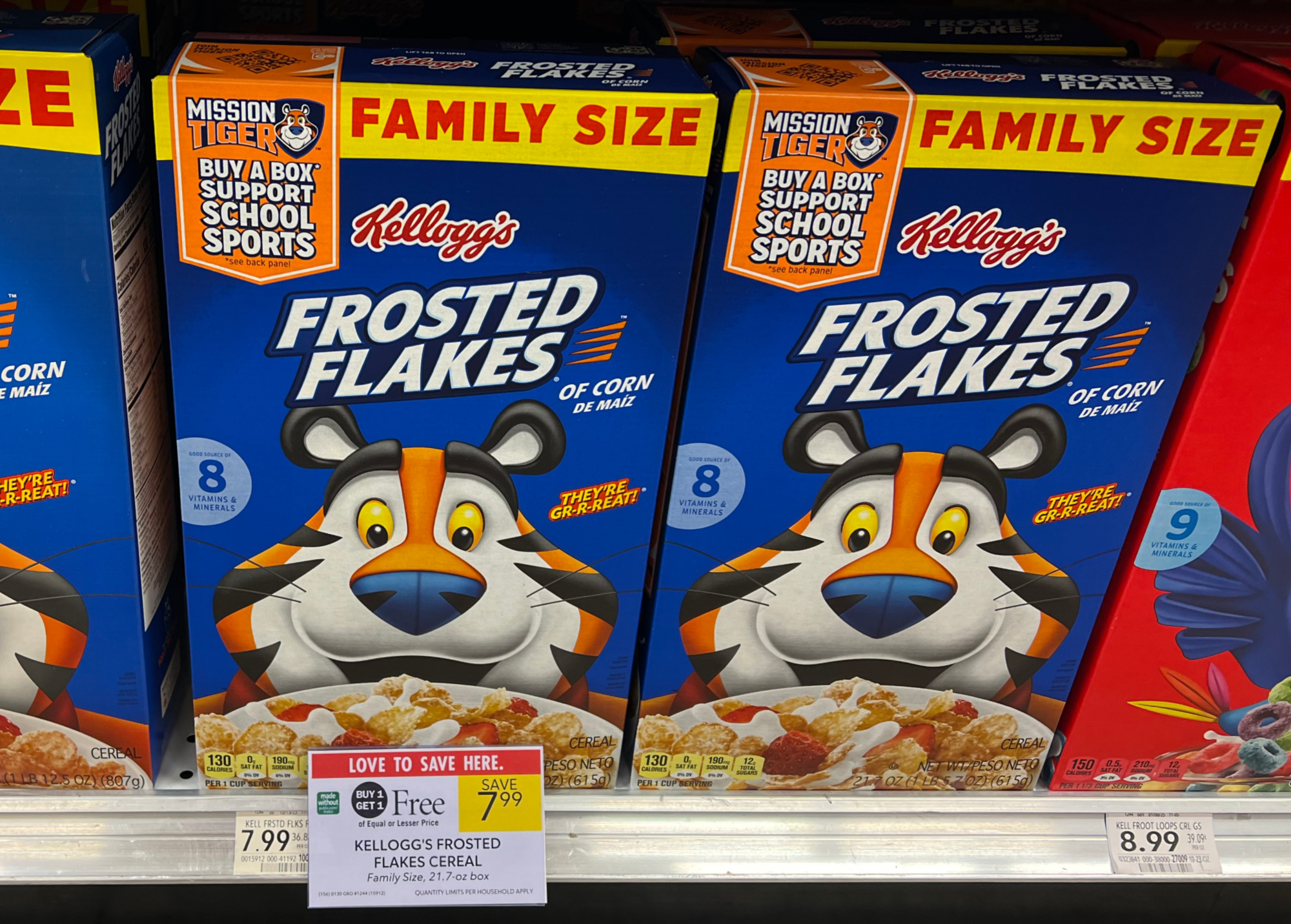Kellogg’s Frosted Flakes, or Froot Loops Cereal, Family Size, 16.6 to 21.7 oz, BOGO $7.99