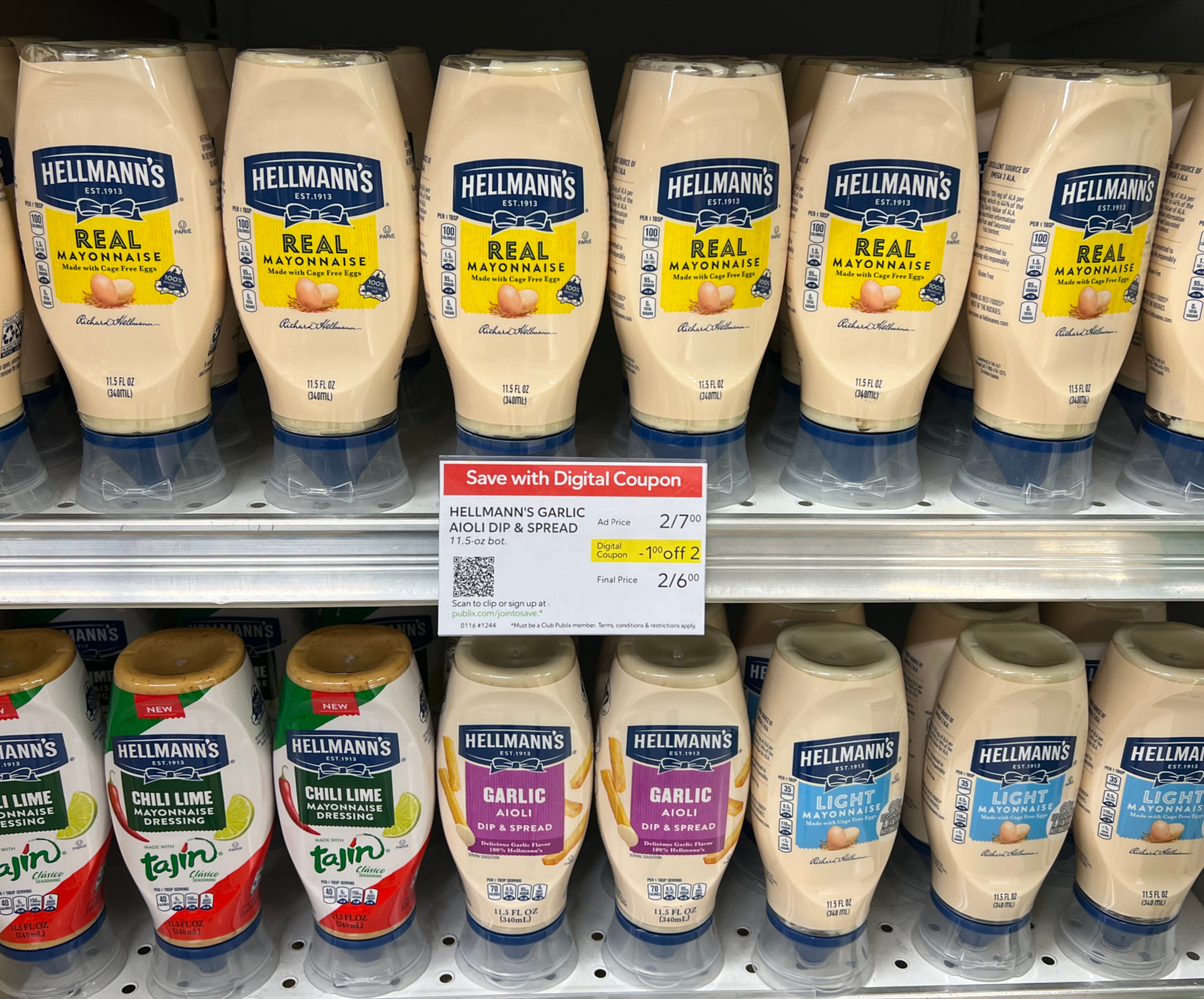 –$1/2 Hellmann’s Mayonnaise, or Dressing, Dip & Spread, or Dressing & Spread, 11.5 oz (Publix Digital Coupon)
