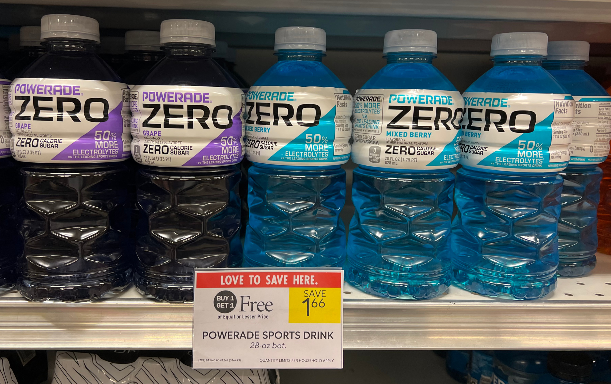 Powerade Sports Drink, 28 oz bot, BOGO $1.66