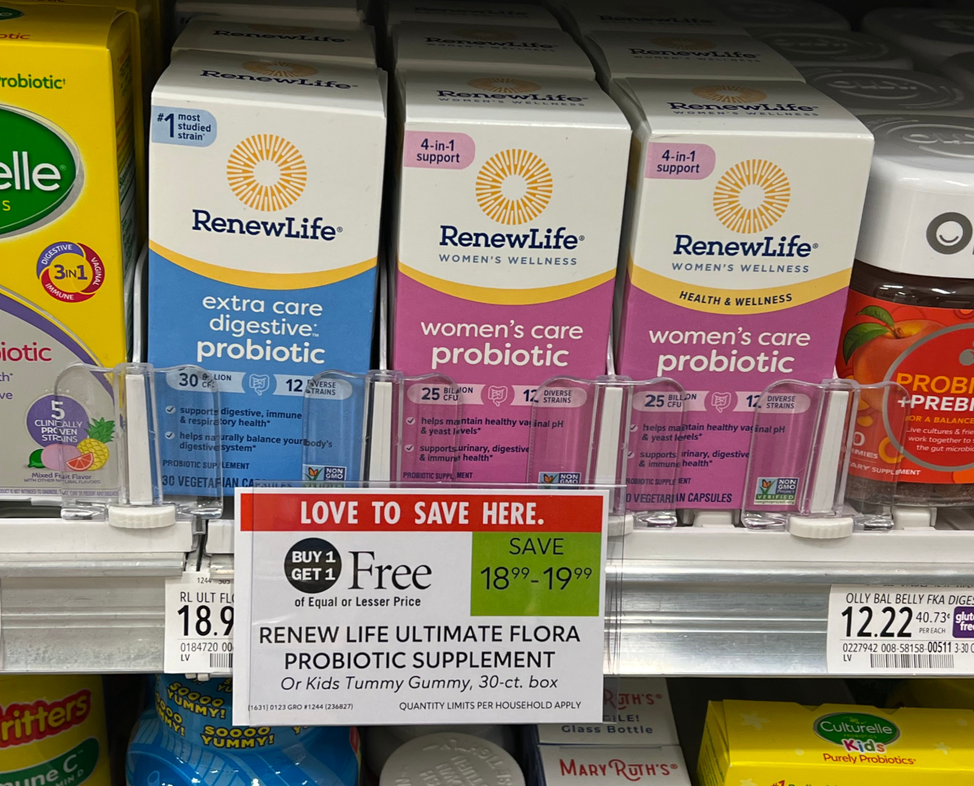 Look for a super deal on Renew Life right now at Publix. With the BOGO sale and coupon combo you can get the probiotic supplements as low as $5.50 the next time you shop.