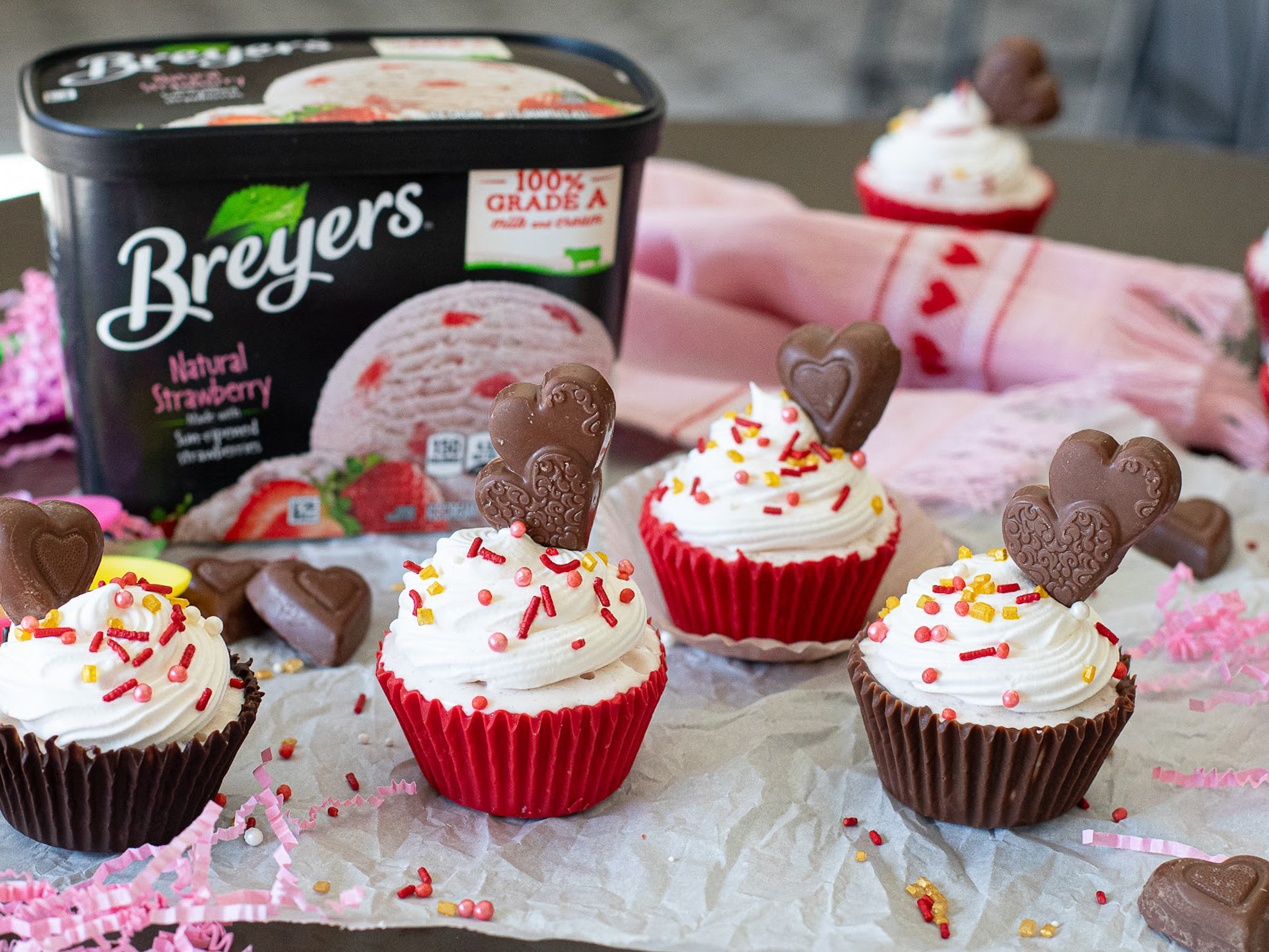 Speaking of yummy creations, I’ve got a super cute Valentine’s Day recipe idea using Breyers. Treat your Valentine to a tasty dessert that’s sure to melt their heart. Whip up some chocolate cupcake cups and fill with their favorite Breyers flavor. Add some whipped topping and festive decorations for the perfect little treat to show someone you care.