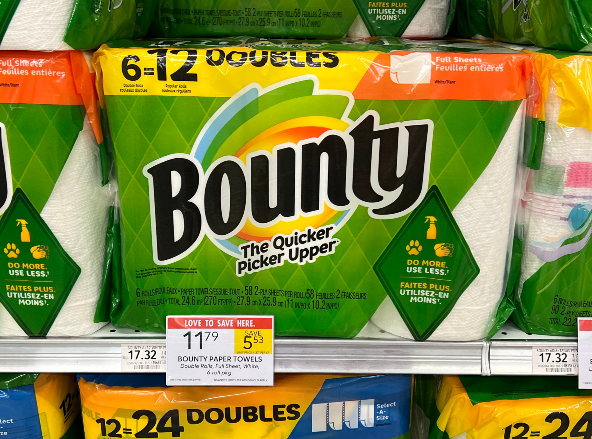 Bounty Paper Towels, Double Rolls, 6-Roll, or Triple Rolls, 4-Roll, $11.79 (reg $17.32)