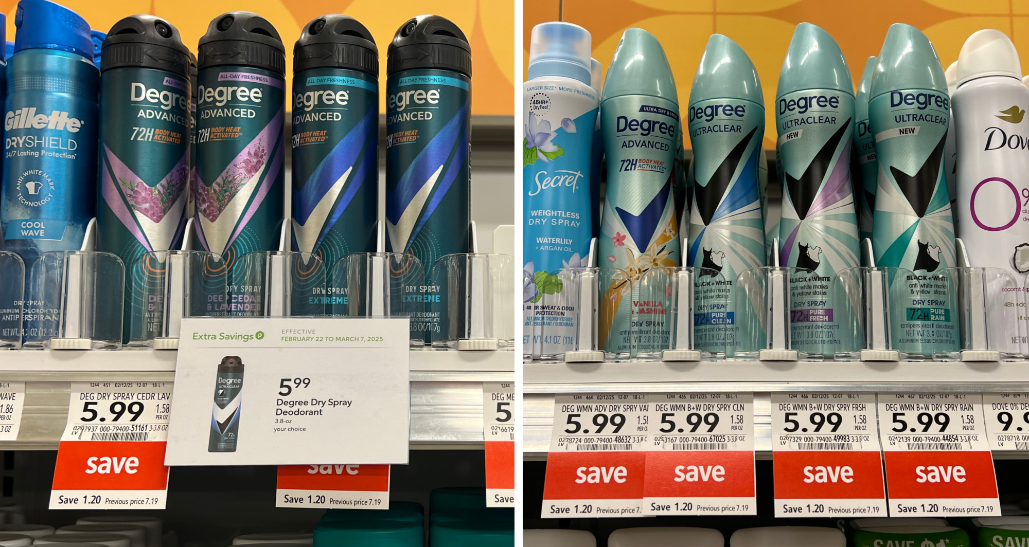 –$2/1 Degree Body Heat Activated or Ultraclear Antiperspirant Stick or Dry Spray (excludes Whole Body Deodorant, Clinicals, twin packs, 0.5oz, 1.0oz sizes) (Publix Digital Coupon)