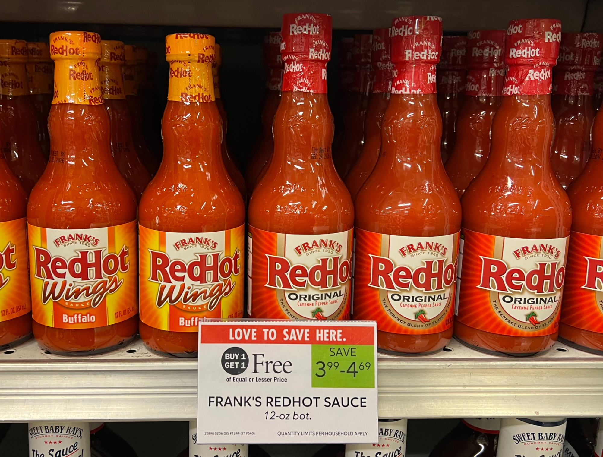 Frank’s Redhot Sauce, 12 oz, BOGO $4.69