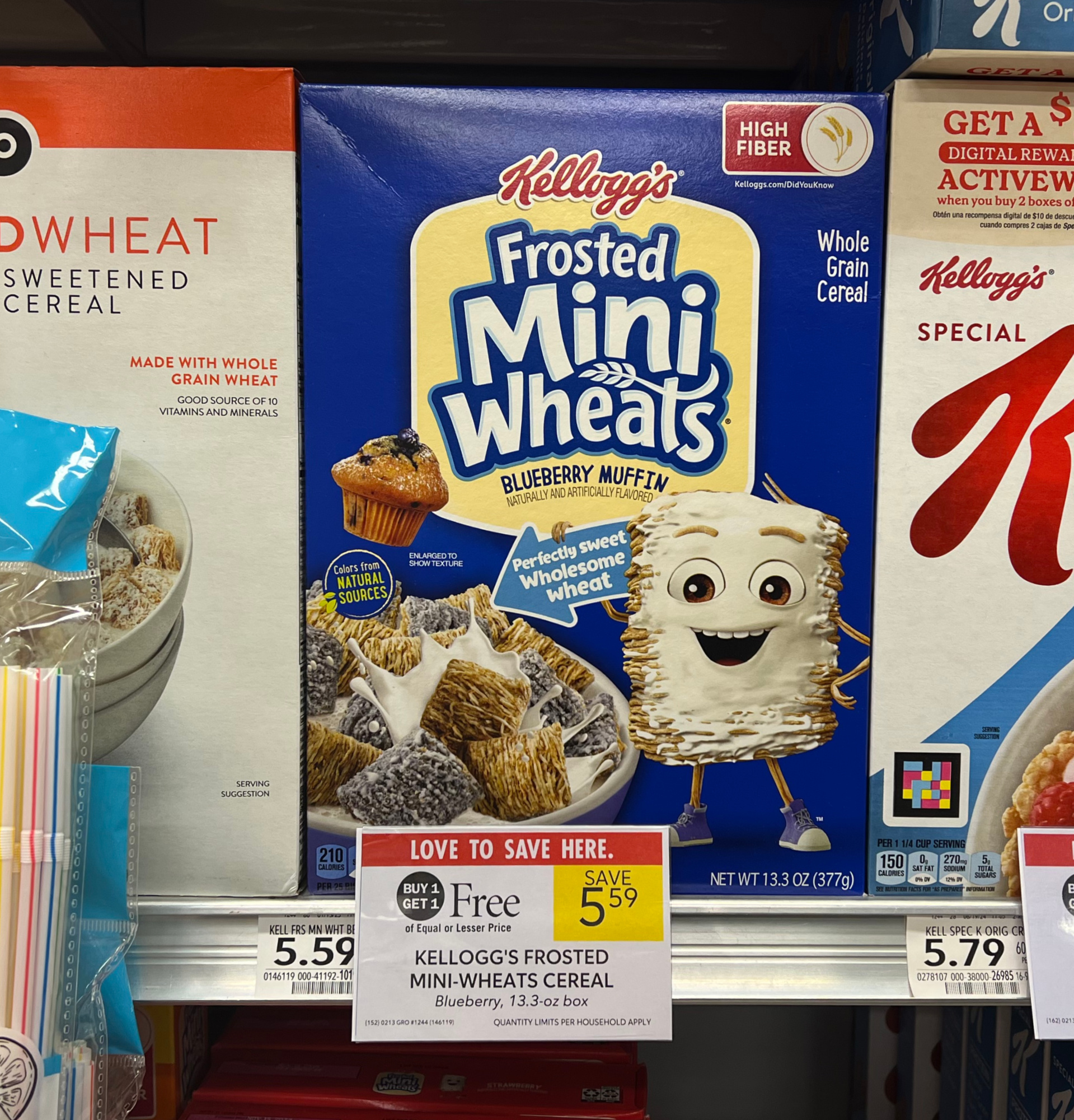 Kellogg’s Frosted Flakes Cereal, 12 or 12.2 oz, or Krave, 10 or 11.4 oz, Apple Jacks, 8.9 to 10 oz, Corn Flakes, 9.6 oz, Special K, 11.7 to 12.9 oz, Froot Loops, 8.9 to 9.3 oz, Mini-Wheats, 13.3 oz, or Krispies, 9 to 12.6 oz box, BOGO $5.59 – $9.29