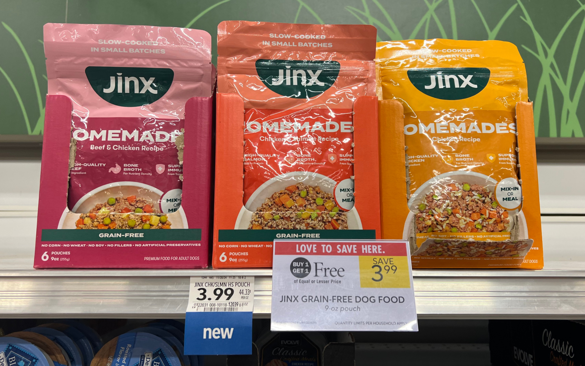 Head over to Publix for a deal on Jinx Grain-Free Dog Food pouches. After discounts you pay as little as $1.50 each.