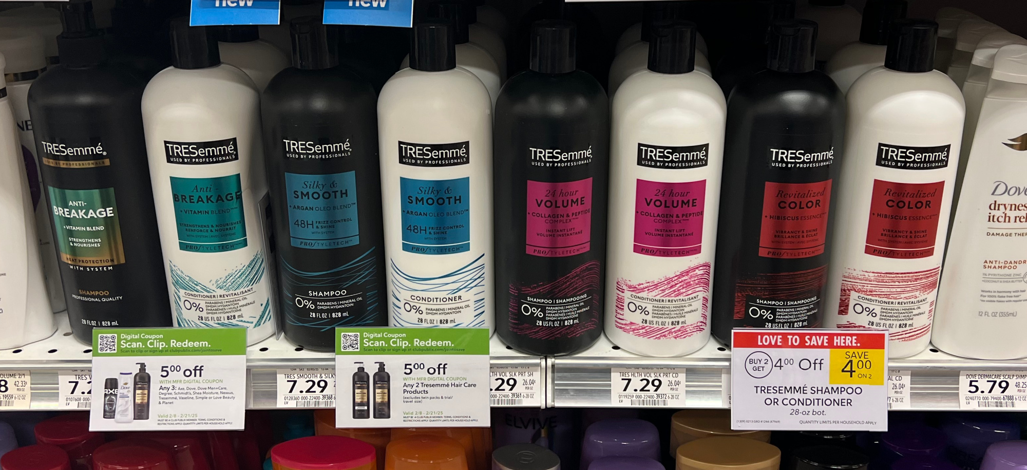 –$5/2 TRESemmé Hair Care products (excludes Hair Spray 4.2oz or smaller, gel 5oz or smaller, 16.5oz SH/CD, trial & travel, and twin packs) (Publix Digital Coupon)