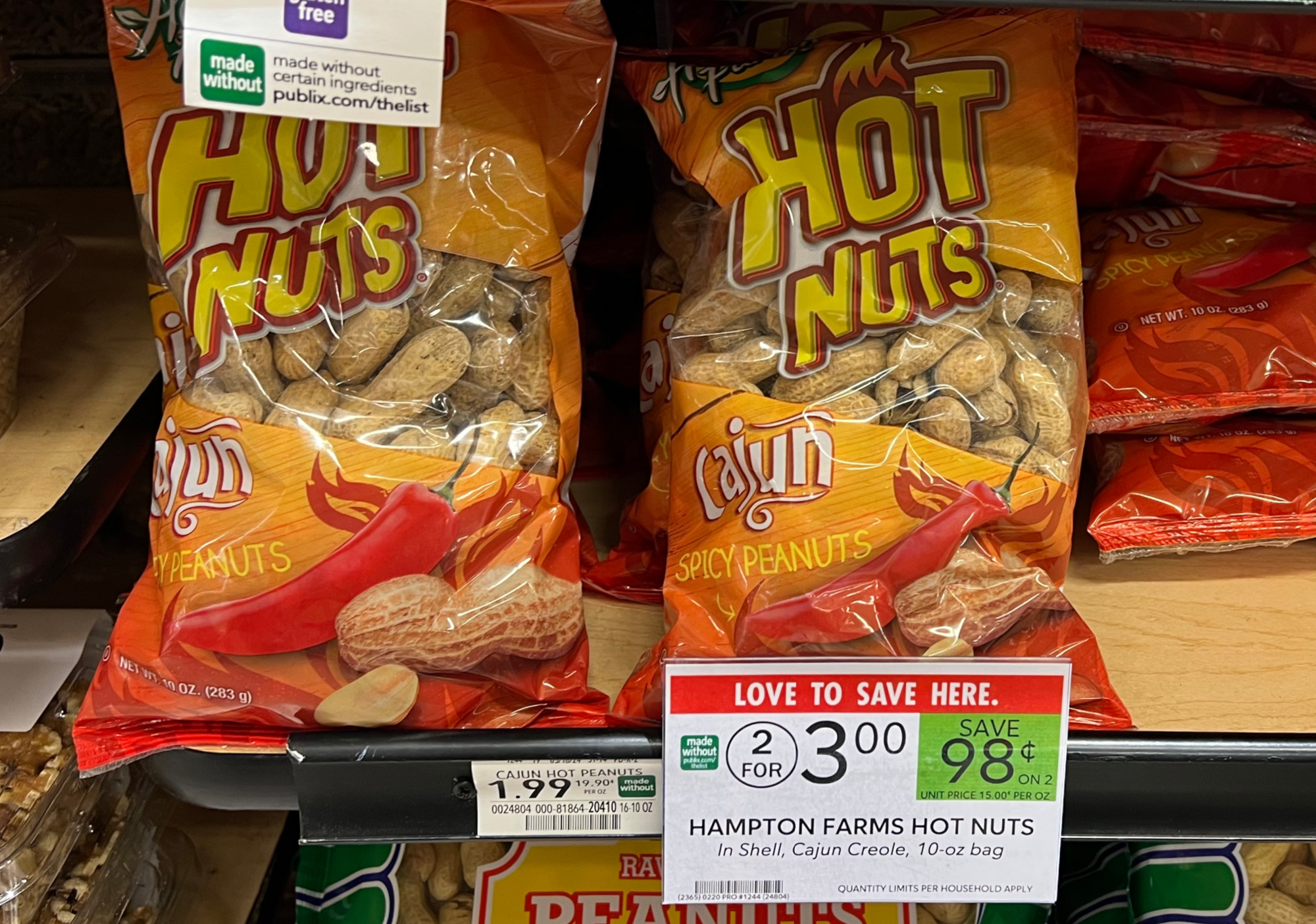 Head over to Publix for a deal on the bags of Hampton Farms Hot Nuts. Use the cash back offer and sale to grab the bags for just $1.25 each.