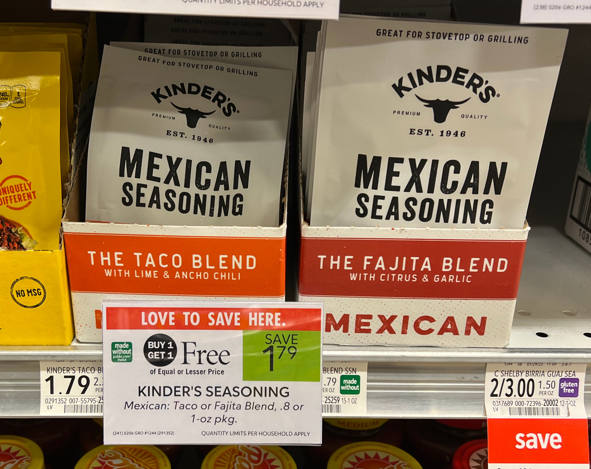 Kinder’s Seasoning Mix, 0.8 to 1 oz, BOGO $1.79