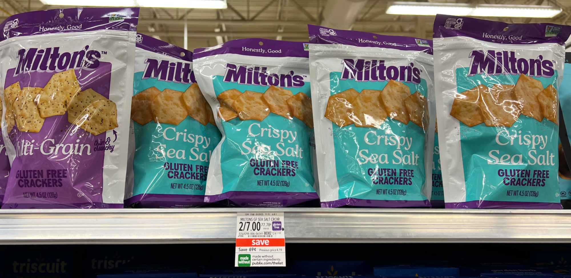 Head over to Publix for a deal on Milton’s Gluten Free Crackers. Combine the sale and coupon to pay just $1.75 per bag the next time you shop!