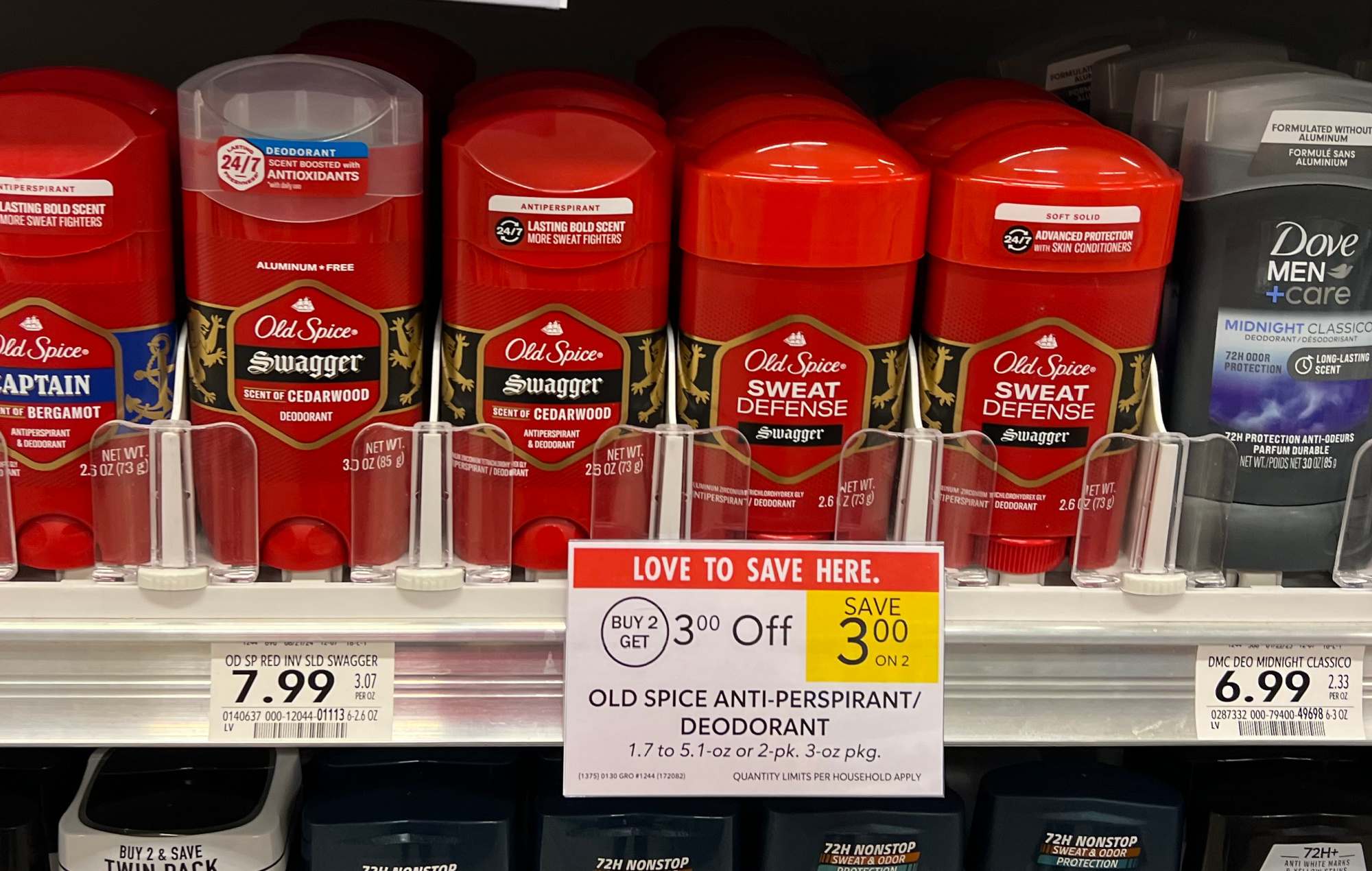 Old Spice Deodorant, 1.7 to 5.1 oz, or 2-pk, 3 oz, $3 Off wyb 2, $7.99+