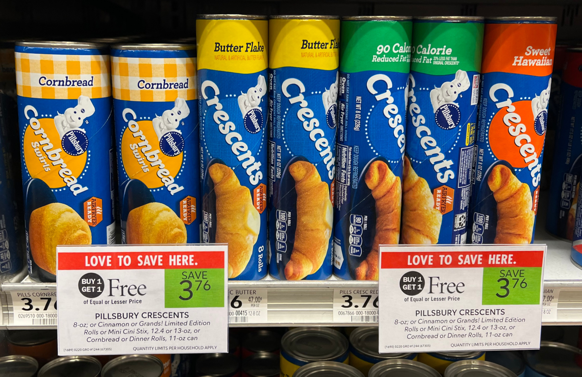 Pillsbury Crescents, 8 oz, or Grands!, Cinnamon, or Dinner Rolls, Mini Cini Stix, or Cornbread, 11 to 13 oz can, BOGO $3.76