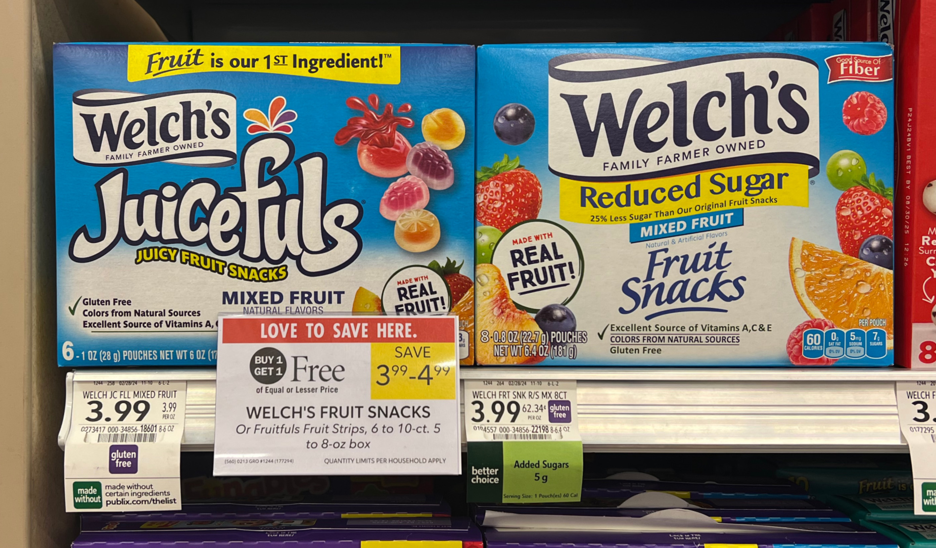 Load your cash back offer and print your coupon to get select Welch’s Juicefuls Fruit Snacks as low as FREE. Might come in handy for easy snacking. Head over to Publix and grab your deal.