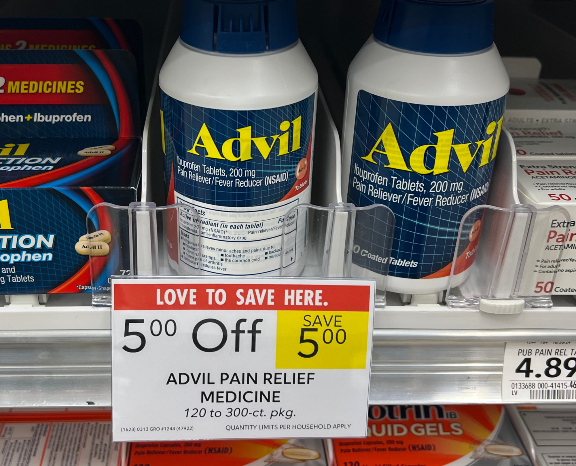 –$5 Off wyb $15 Advil, Advil PM, Children’s Advil, Excedrin, or Voltaren (Publix Digital Coupon)