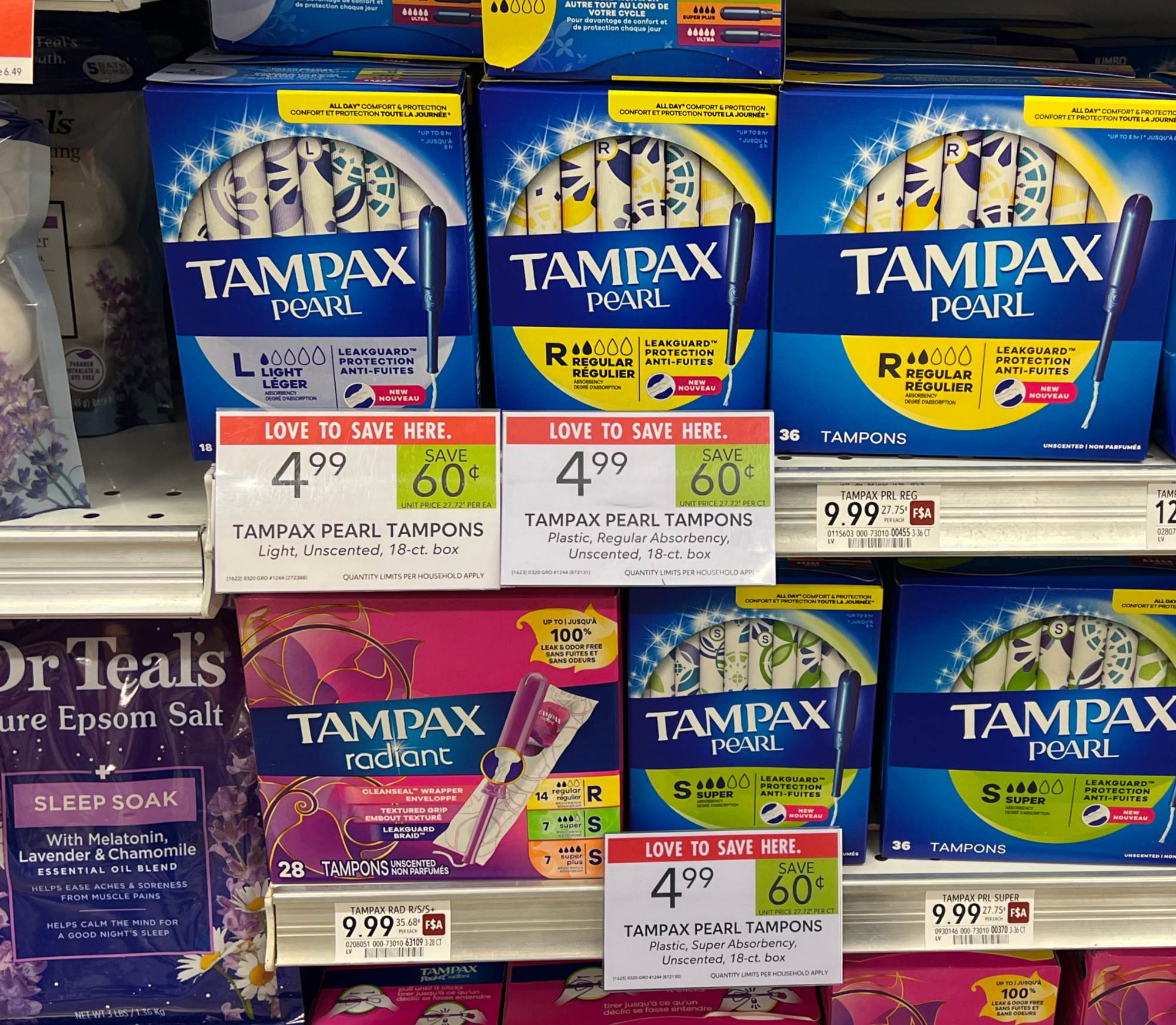 Tampax Pearl Tampons, or Radiant, 14 or 18 ct, $4.99