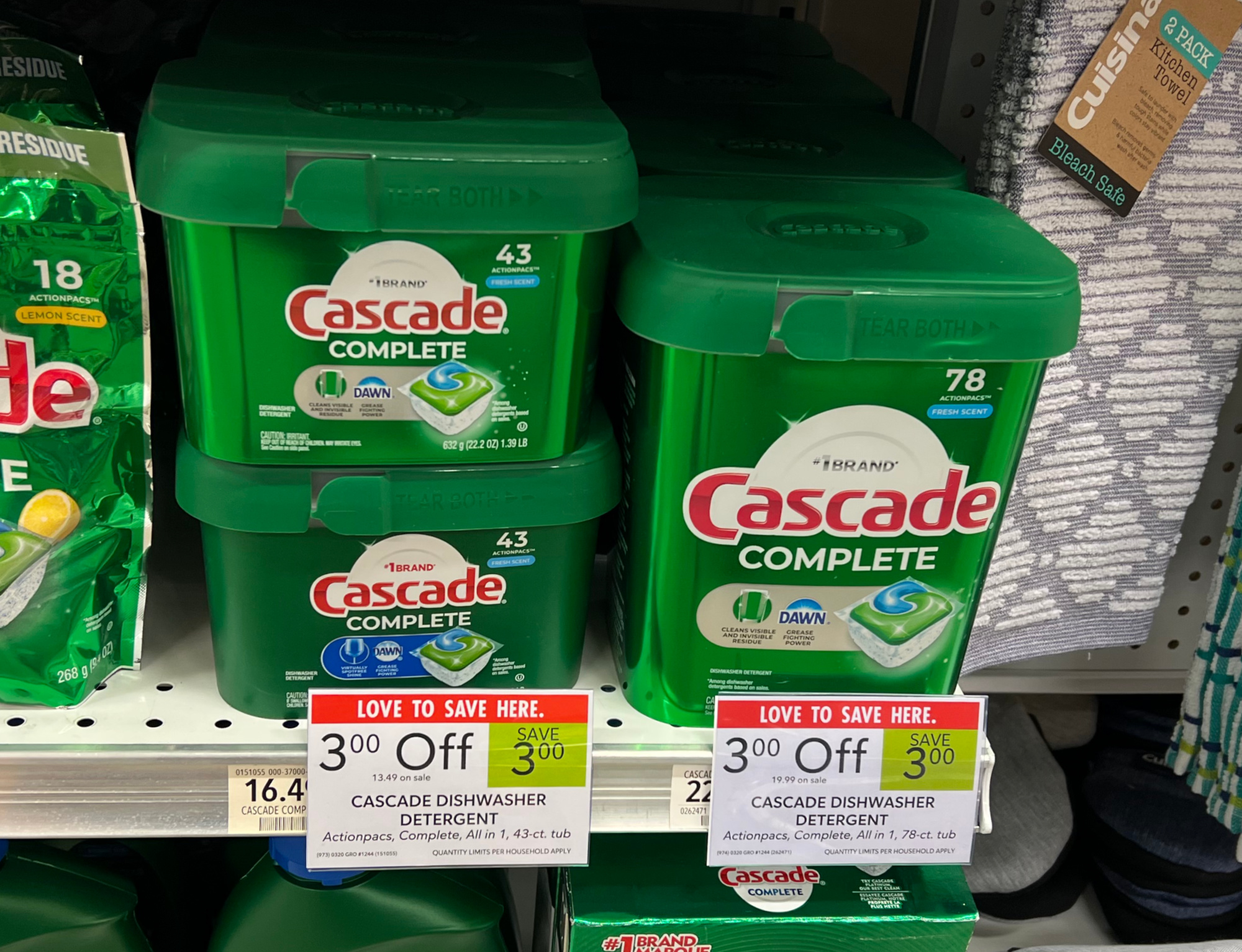 Head over to Publix for a nice deal on Cascade Dishwasher Detergent. Grab a big tub for as little as $16.99 with the sale and coupon combo… you save $5.