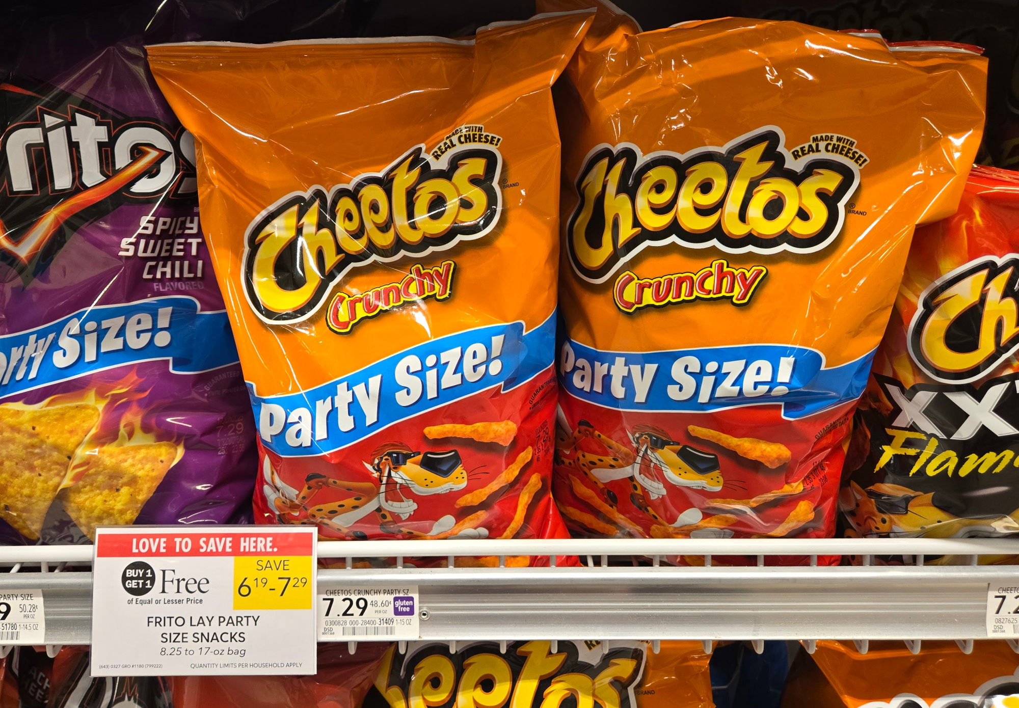 Cheetos, Party Size Snacks, 8.25 to 17 oz bag, BOGO $7.29