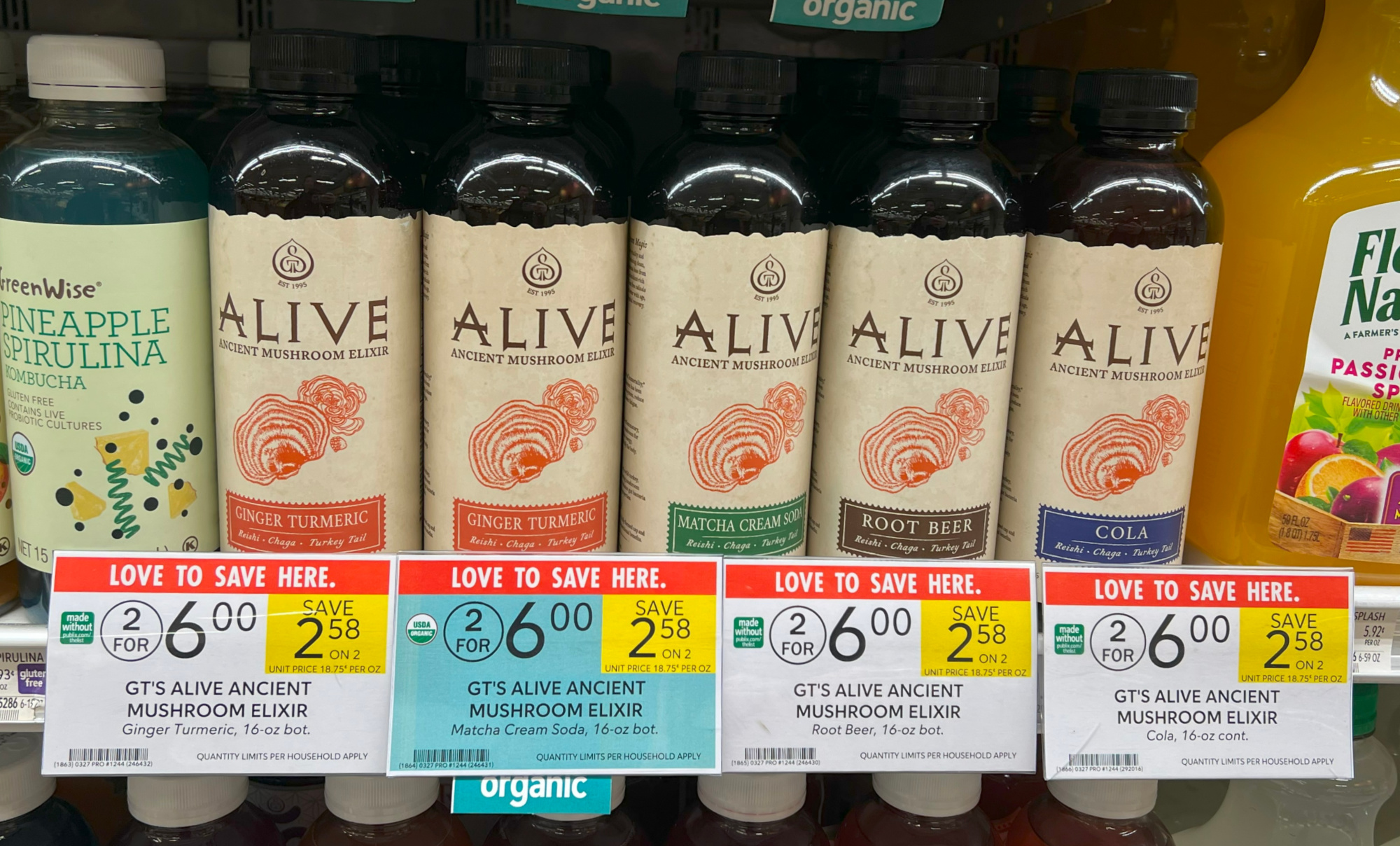 Pick up a nice discount on GT’s Alive Ancient Mushroom Elixir Drinks at Publix. With the sale and Ibotta offer you pay as little $2 per bottle the next time you shop.