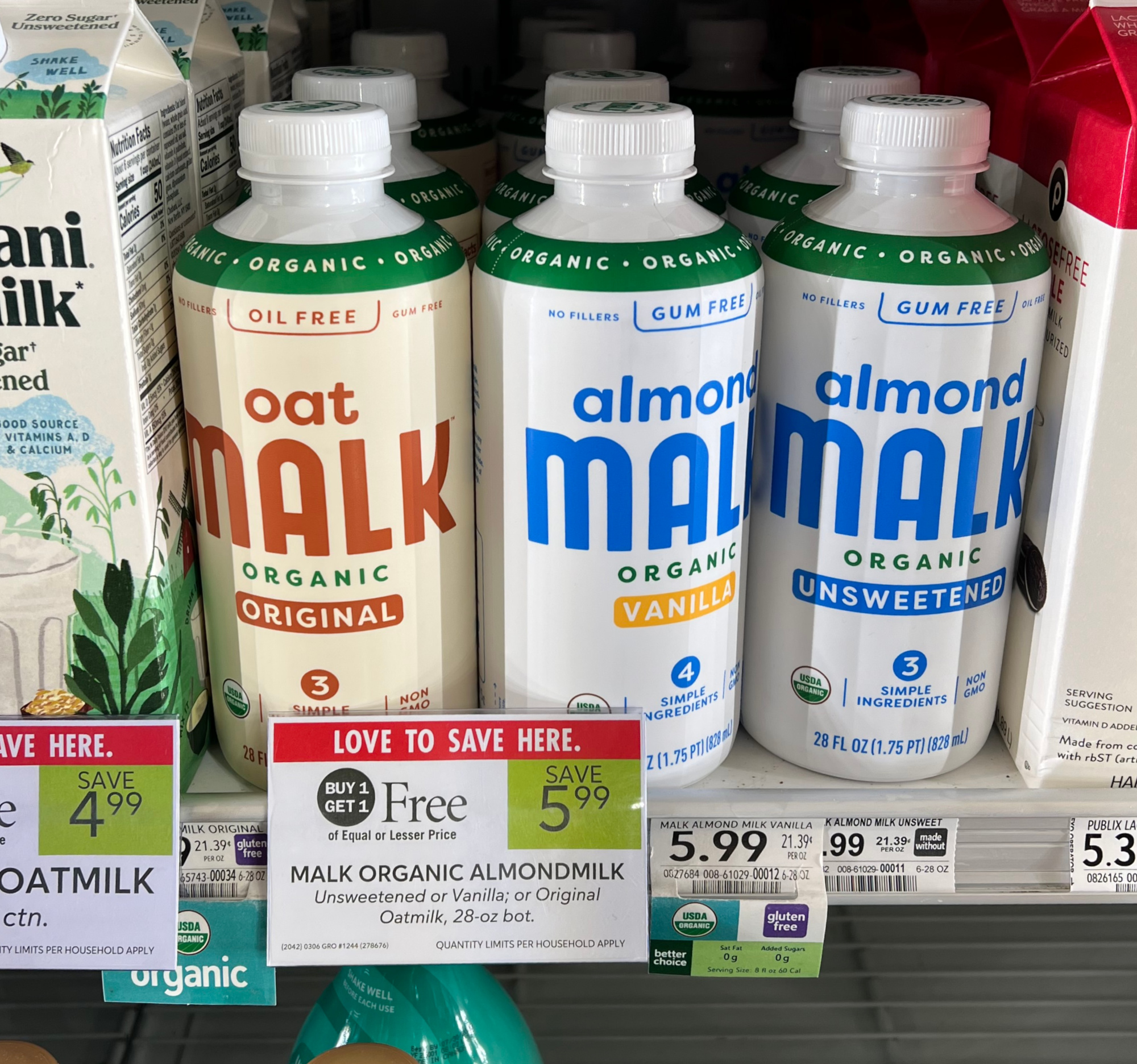 Malk Organic Almondmilk, Unsweetened, or Vanilla; or Original Oatmilk, 28 oz bot, BOGO $5.99