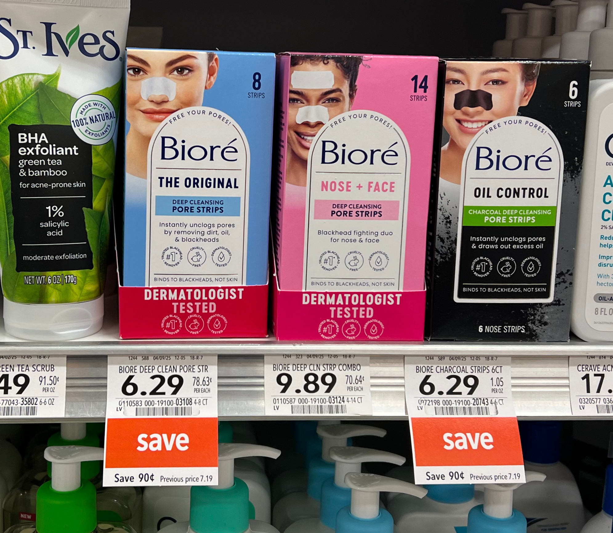 Biore Pore Strips, 6 to 8 ct, $6.29 (reg $7.19)