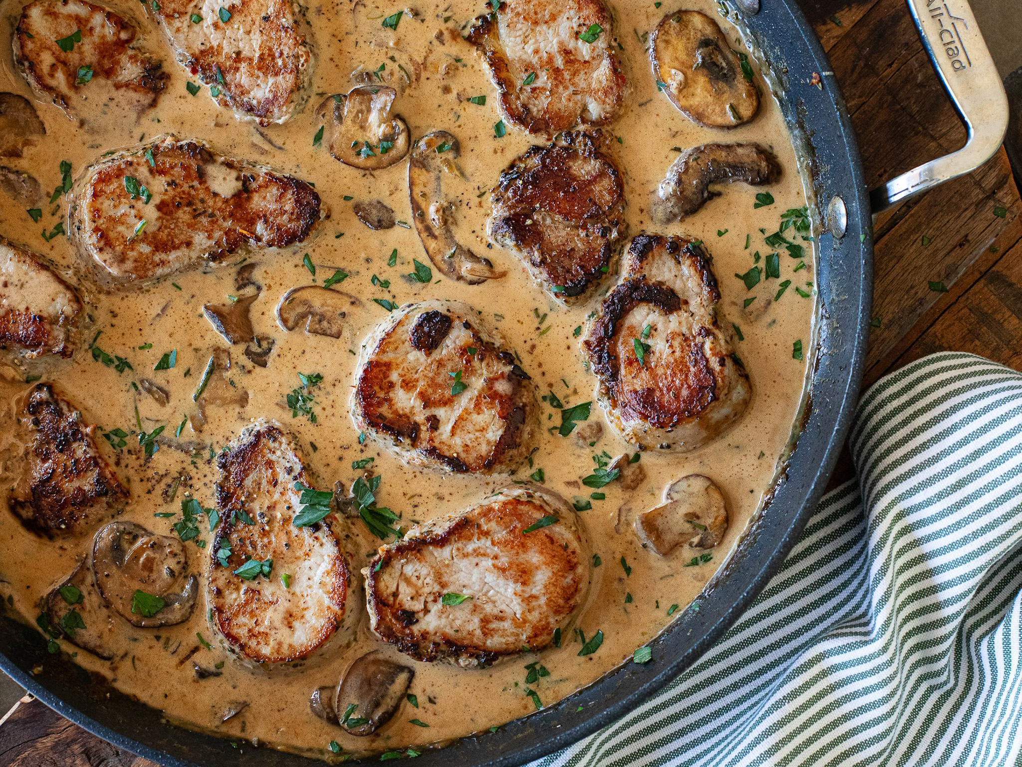 If you need a tasty meal, I thought I would share one of my family’s TOP meals using Hatfield Marinated Pork – my Pork Medallions with Creamy Mushroom Marsala Sauce. This is one of the most requested meals at my house. It’s hearty, delicious and crazy simple to prepare. There are NEVER leftovers so you might want to double the recipe if you want extras!
