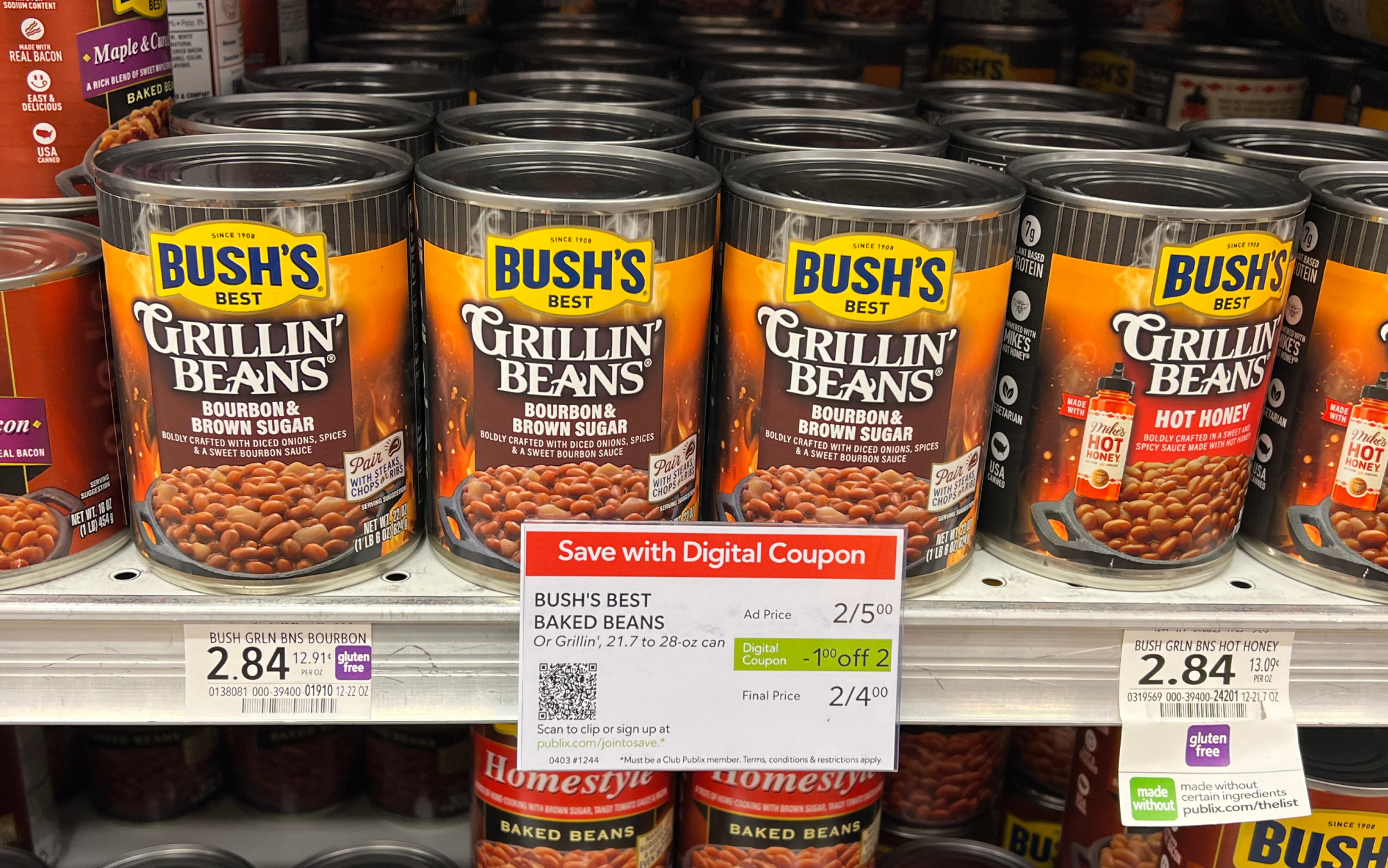 –$1/2 Bush’s Best Baked Beans, or Grillin’, 21.5 to 28 oz can (Publix Digital Coupon)