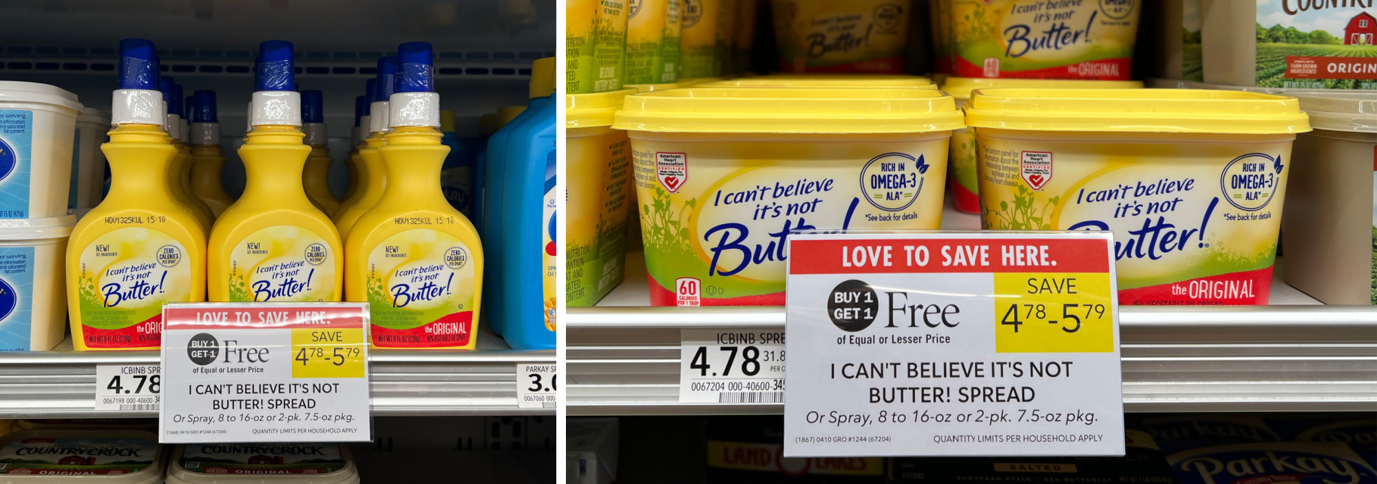I Can’t Believe It’s Not Butter Spread, or Spray, 8 to 16 oz, or 2-pk, 7.5 oz, BOGO $4.78 – $5.79