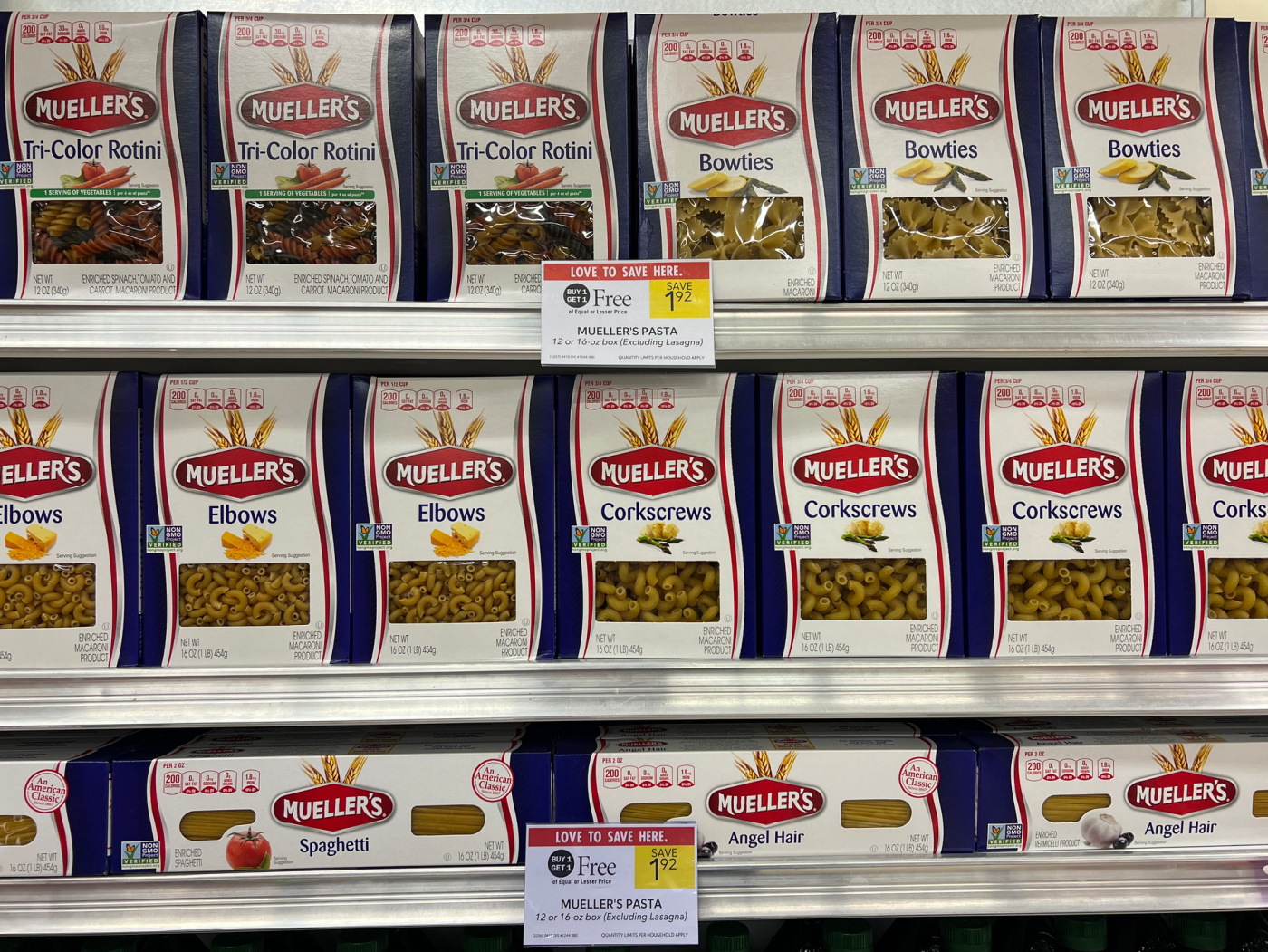 Mueller’s Pasta, 12 or 16 oz box, (Excluding Noodles and Lasagna), BOGO $1.92