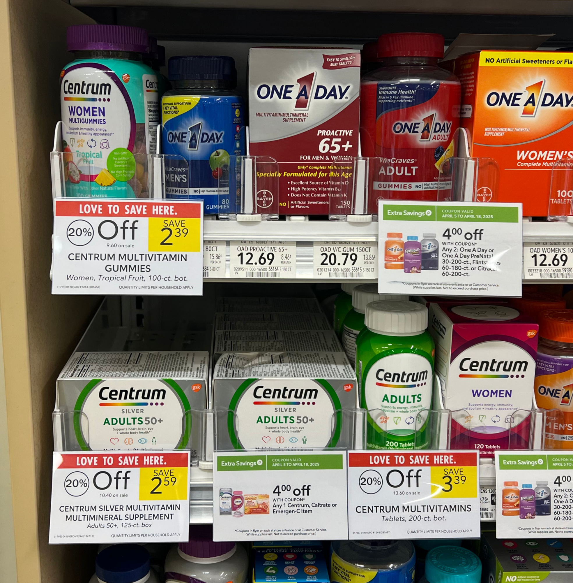 –$3/1 Centrum product (60ct or larger) or Centrum Menopause product (28ct or larger) (Publix Digital Coupon)
