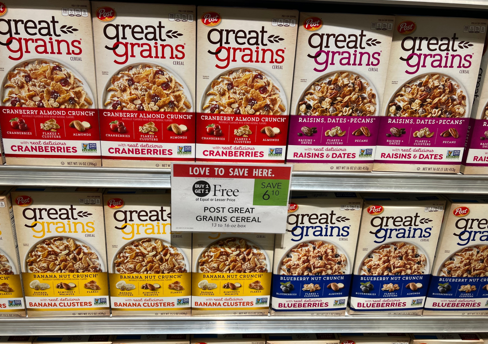 Post Great Grains Cereal, 13 to 16 oz, BOGO $6.10