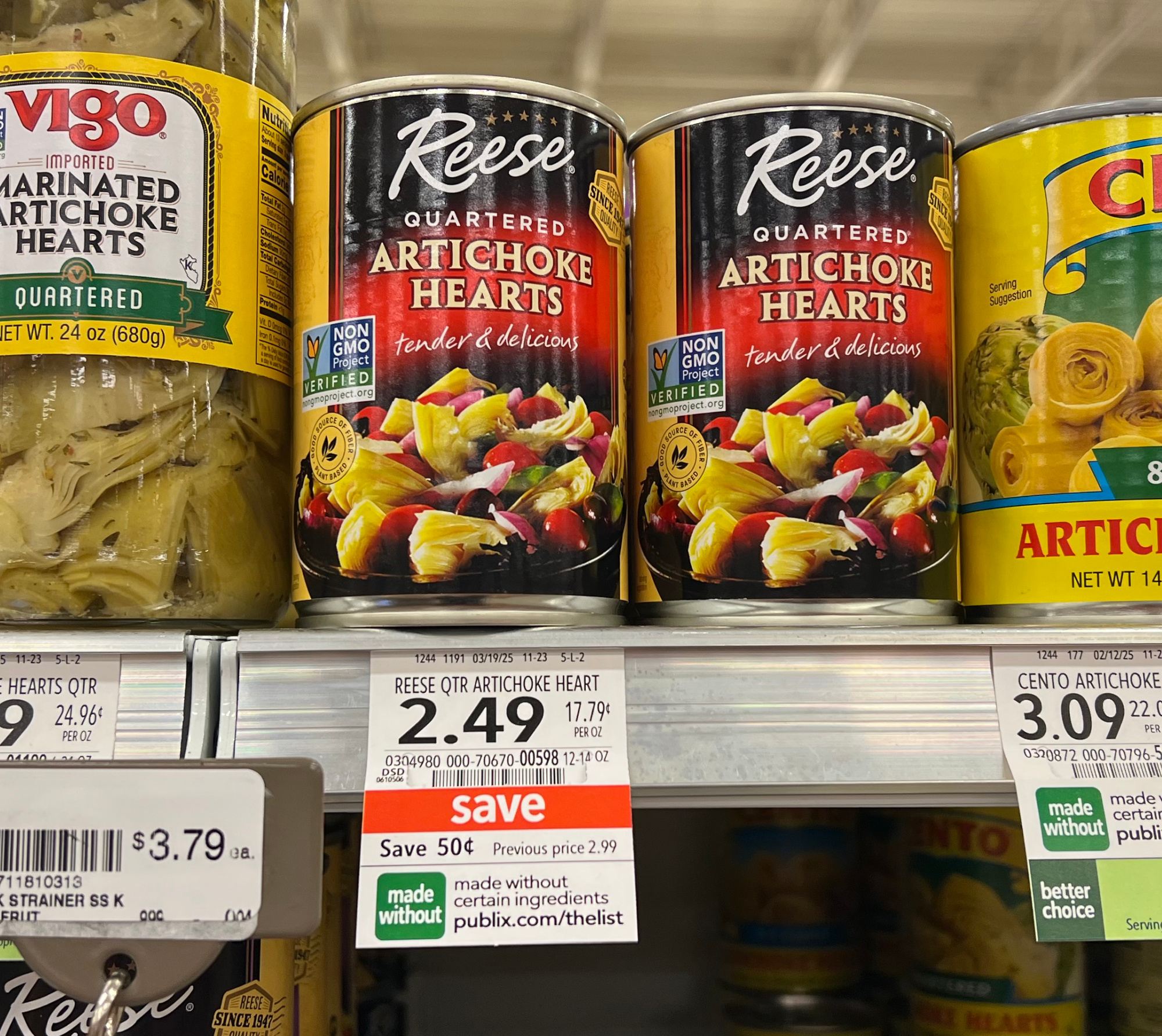 Grab a nice deal on Reese Artichoke Hearts at Publix. Pay as little as $2.24 per can. That’s a nice deal for all of us who could eat them every single day (like me!)