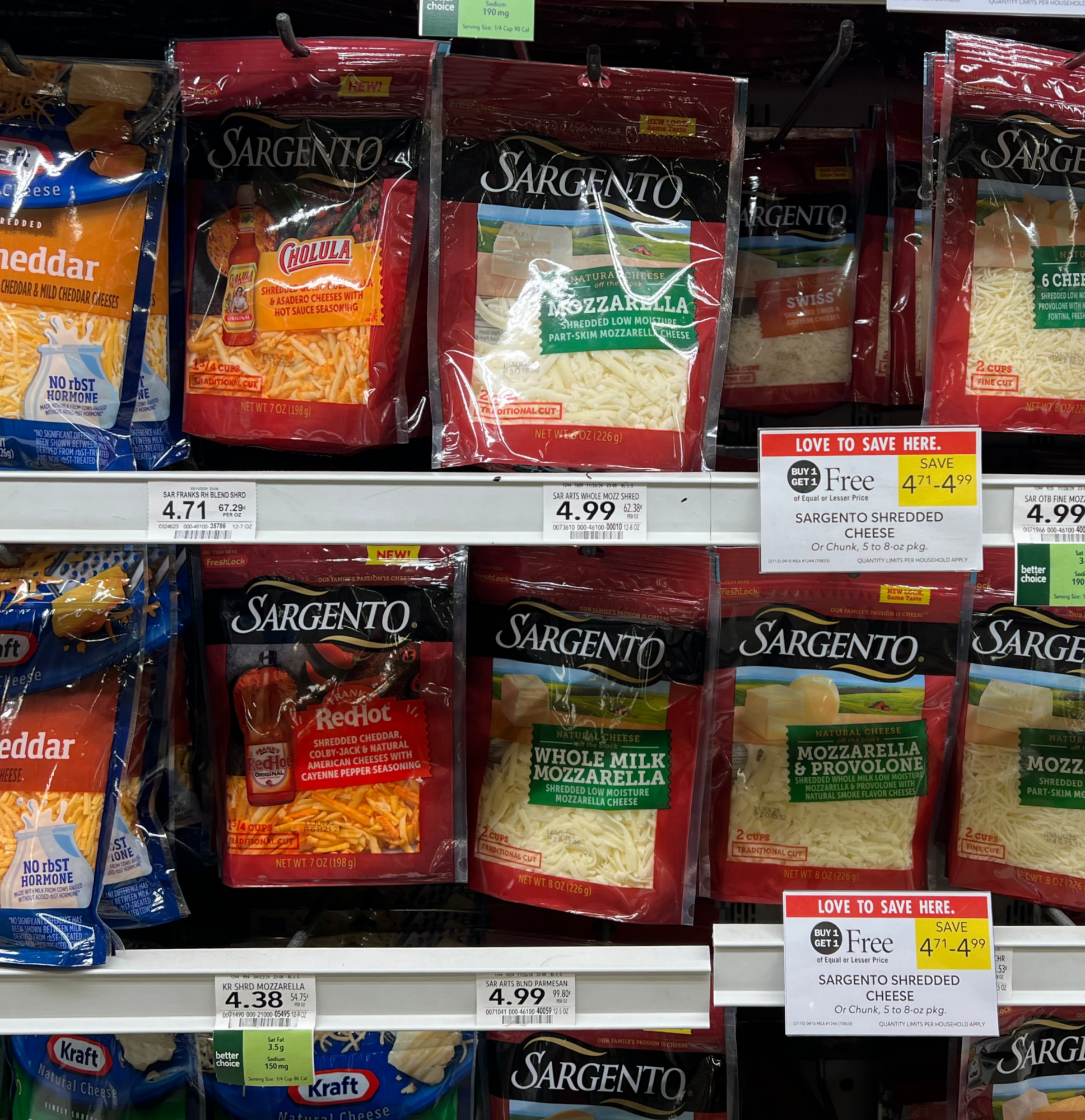 Now is a great time pick up some inexpensive Sargento Shredded Cheese. Get the bags of Cholula or RedHot cheese for as little as $1.36 with the sale and coupon. I’ll never pass up cheap cheese!