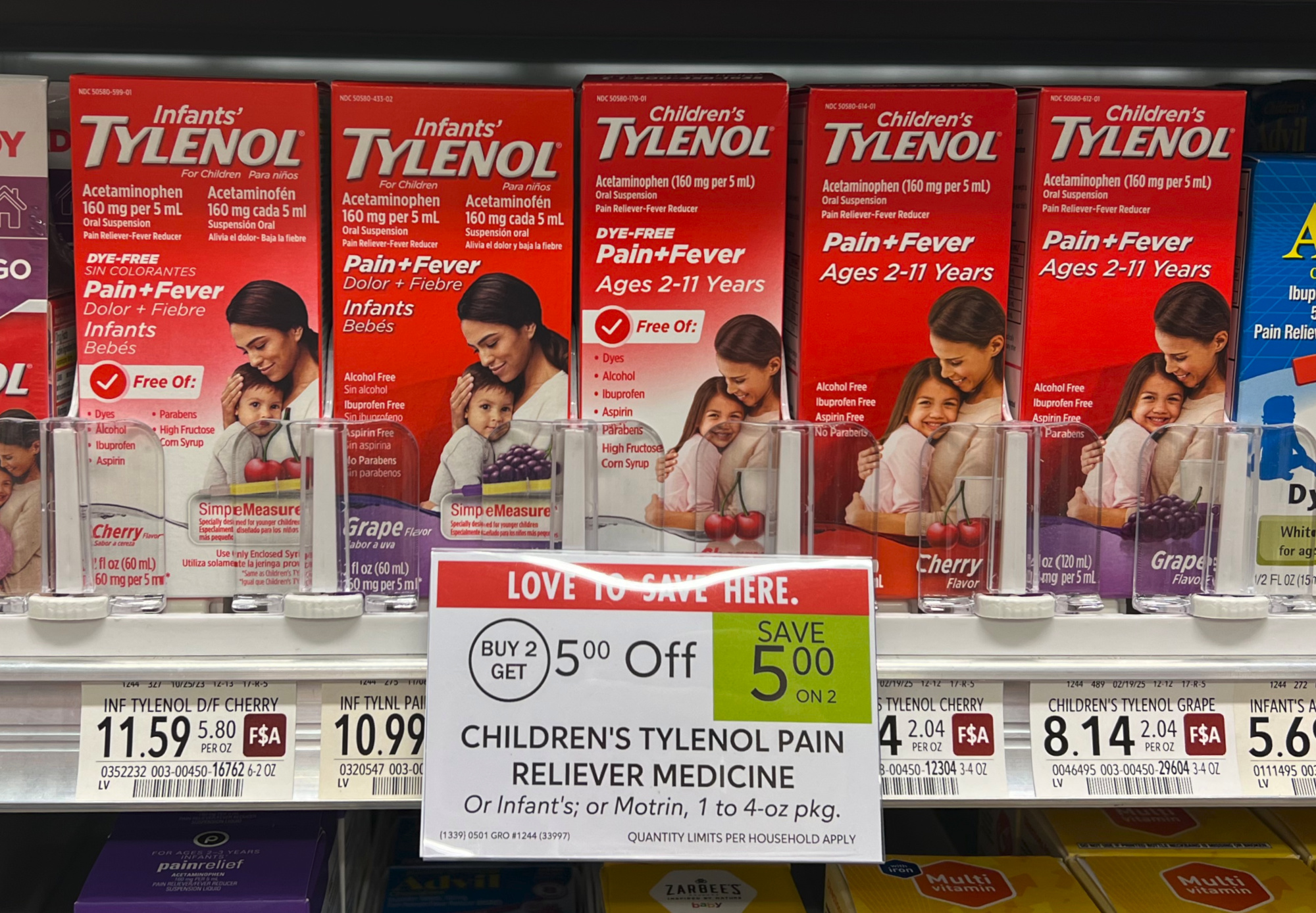Children’s, or Infant Tylenol, 1 to 4 oz, or 2-pk, $5 Off wyb 2, $8.14+