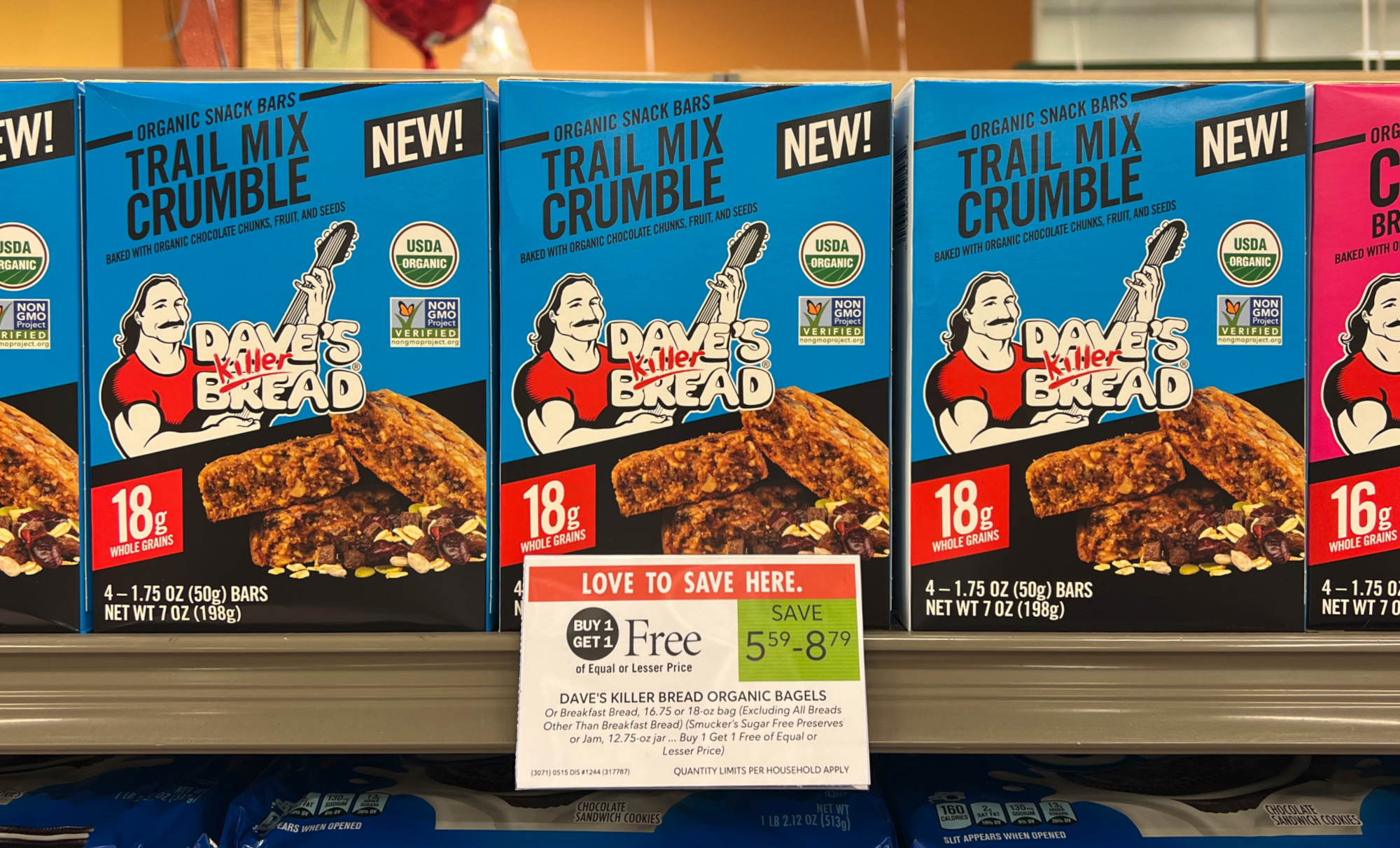 –$1.50/1 Dave’s Killer Bread Snack or Protein Bars, 4-pk (Ibotta Deposit) – Limit 5