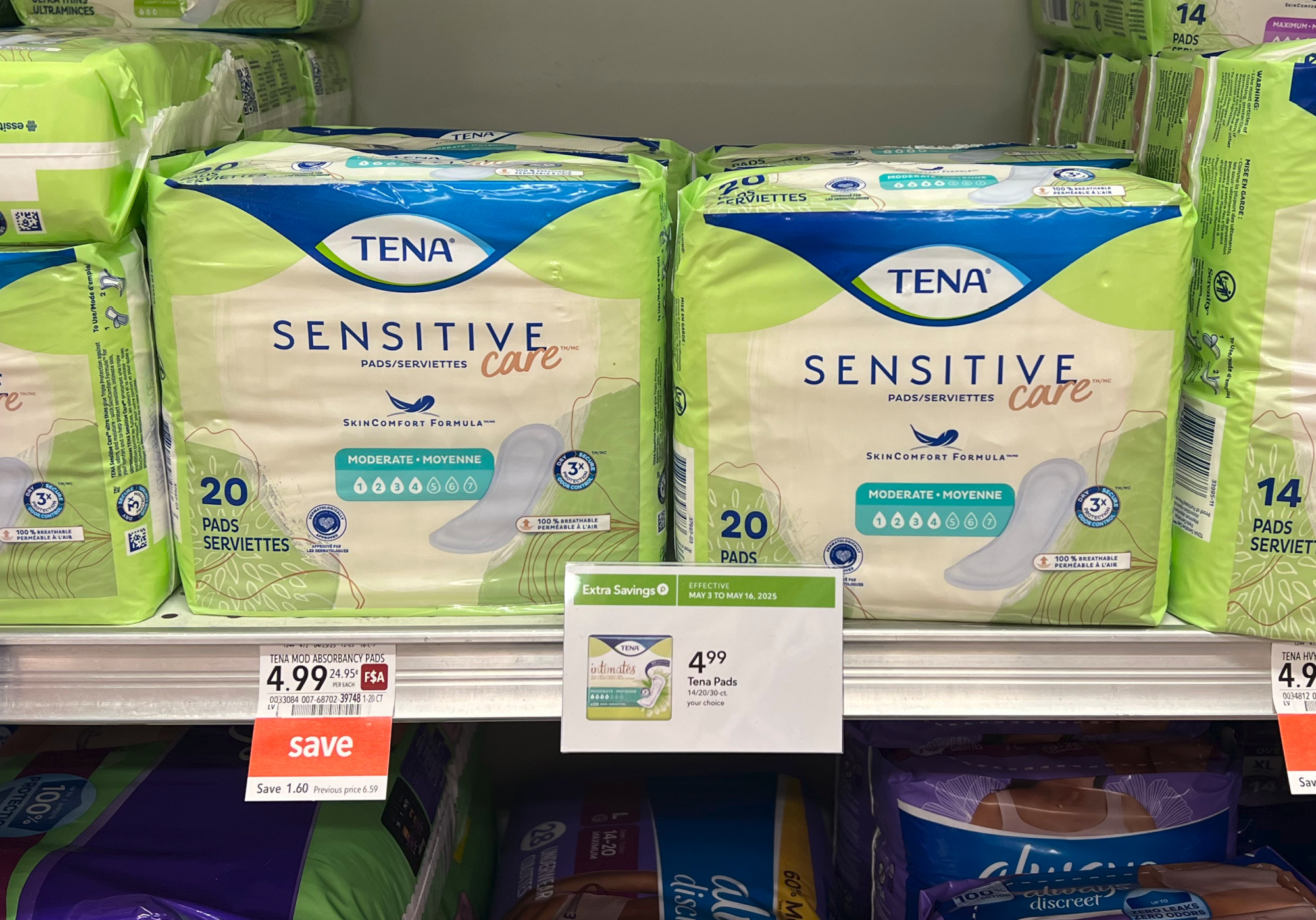 Tena Pads, 14, 20, or 30 ct, $4.99 (reg $6.59)