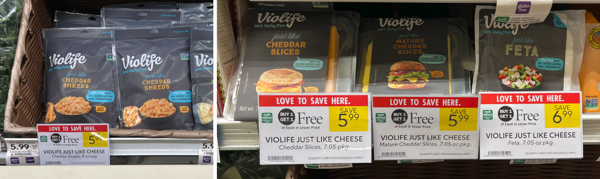 Head to Publix for a super deal on vegan cheese. With the BOGO sale and cash back offer combo, you’ll pay as little as $1 for Violife Just Like Cheese shreds or slices. Plus, you can get cheap feta too!