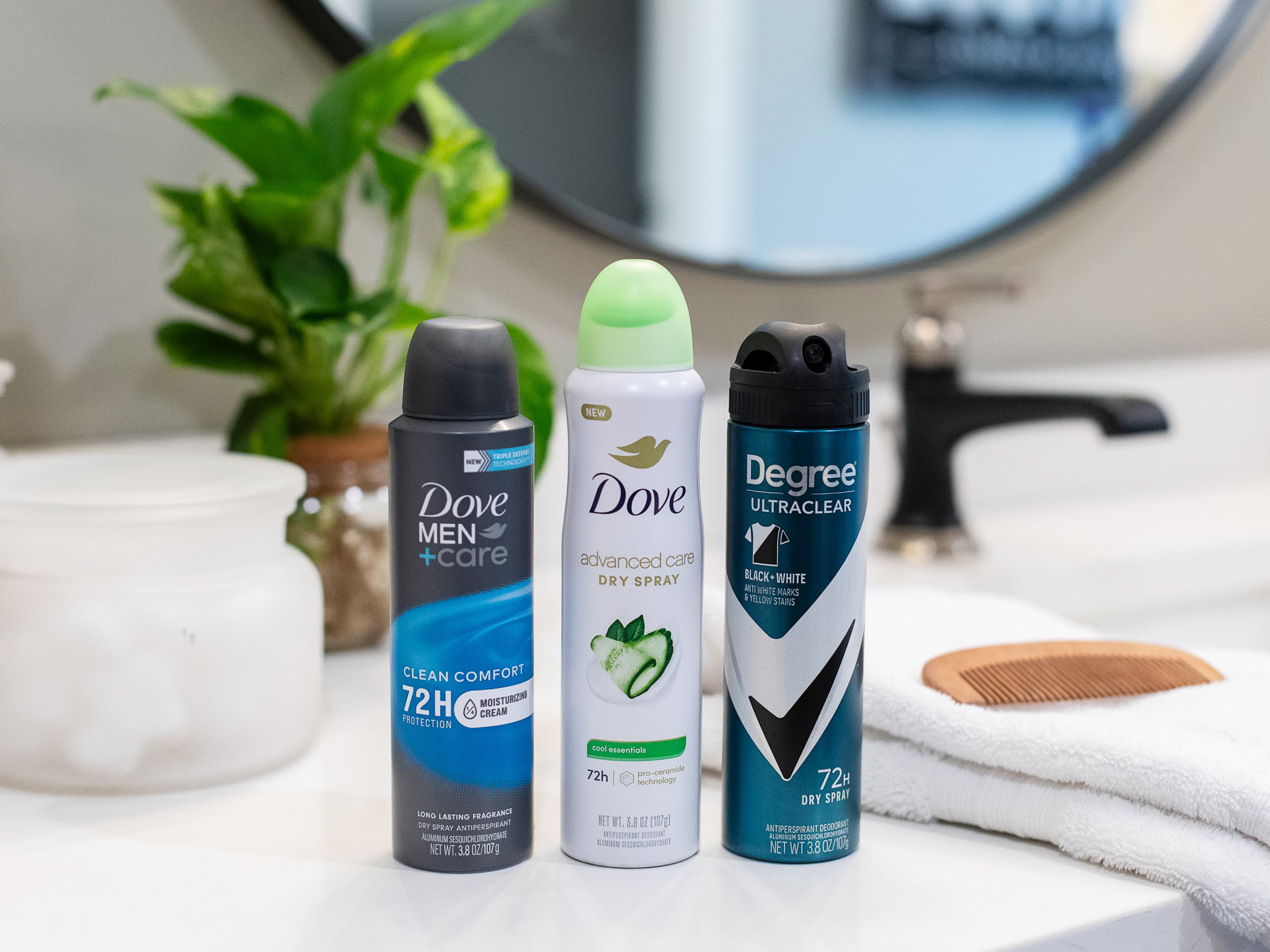 Want powerful protection? Degree dry sprays are engineered to provide long-lasting sweat and odor protection, perfect for those high-energy activities. And when you are looking for gentle care and freshness, Dove dry sprays offer effective protection while also caring for your skin, leaving your underarms feeling soft and smooth.