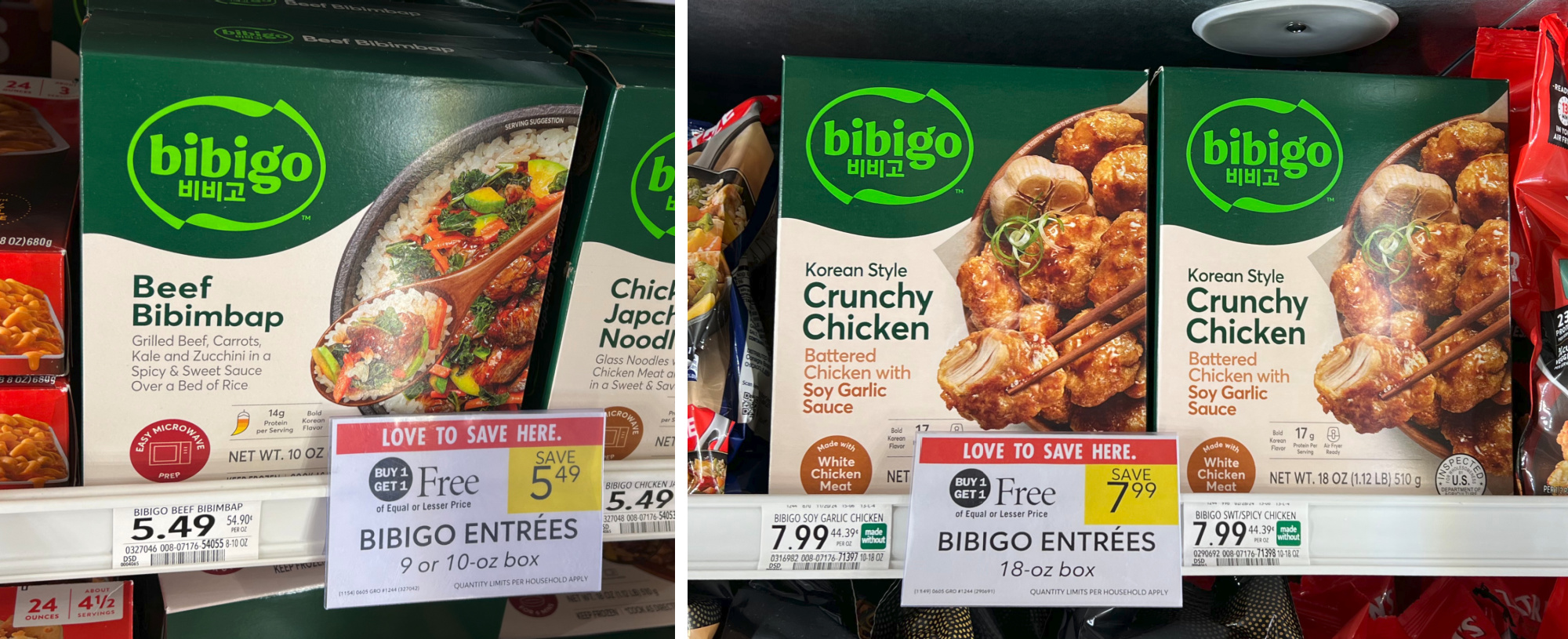 Bibigo Entrees, 9 to 18 oz box, BOGO $5.49 – $7.99
