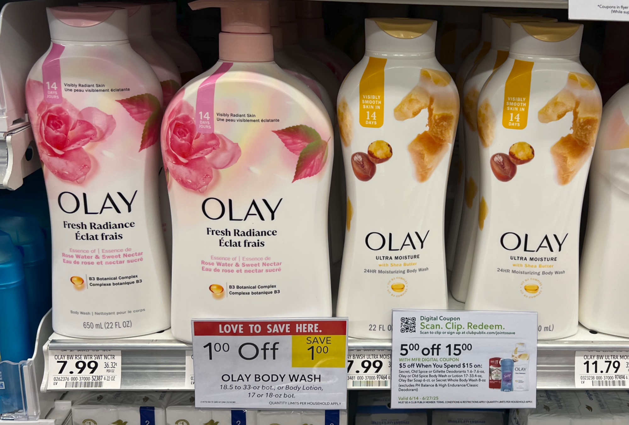 Combine the sale and coupon to get Olay Body Wash for as little as $5.32 per bottle this week at Publix.