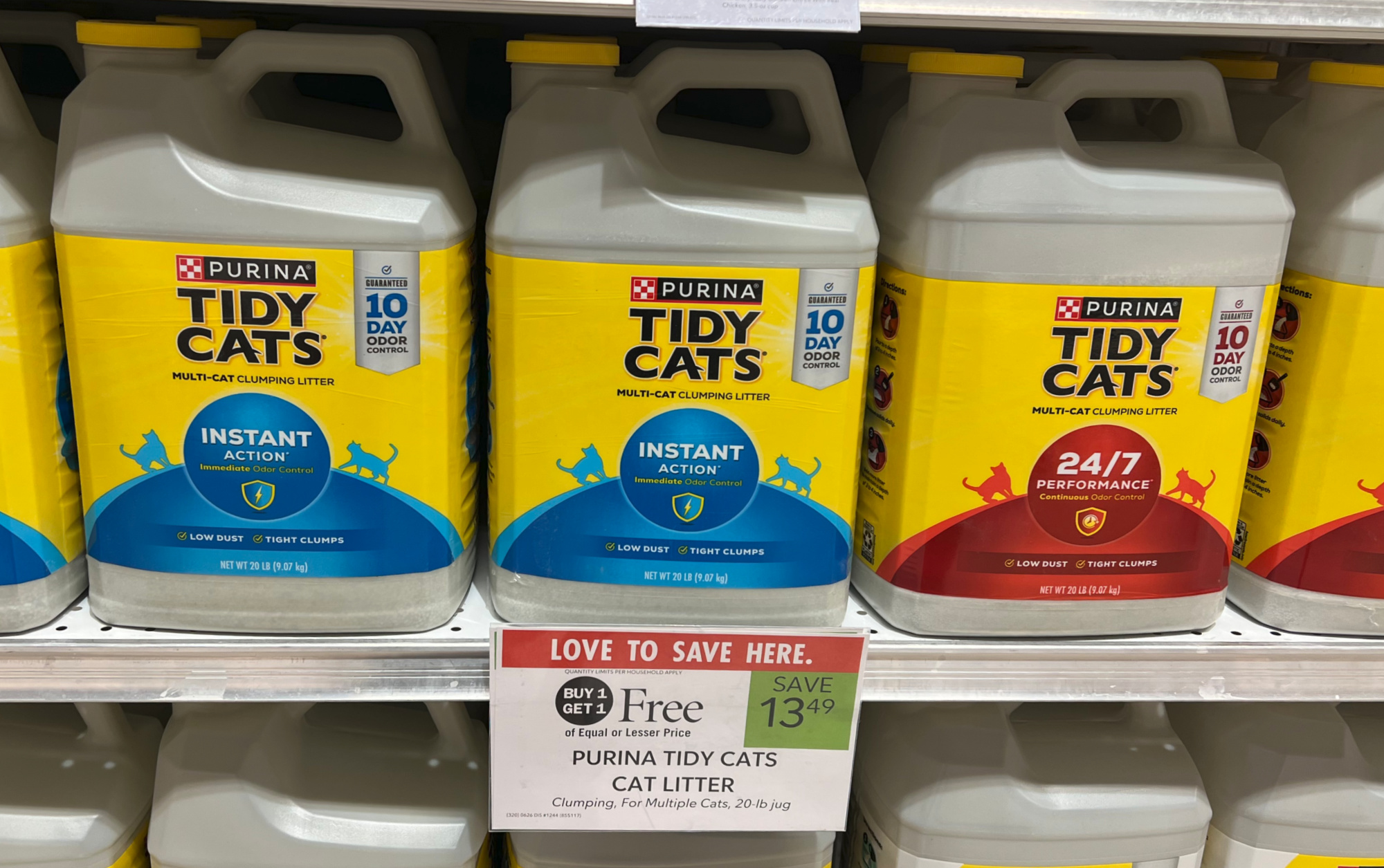 Look for a nice deal on Purina Tidy Cats Clumping Litter this week at Publix. Combine the BOGO sale and coupon to pay just $4.75 per jug.