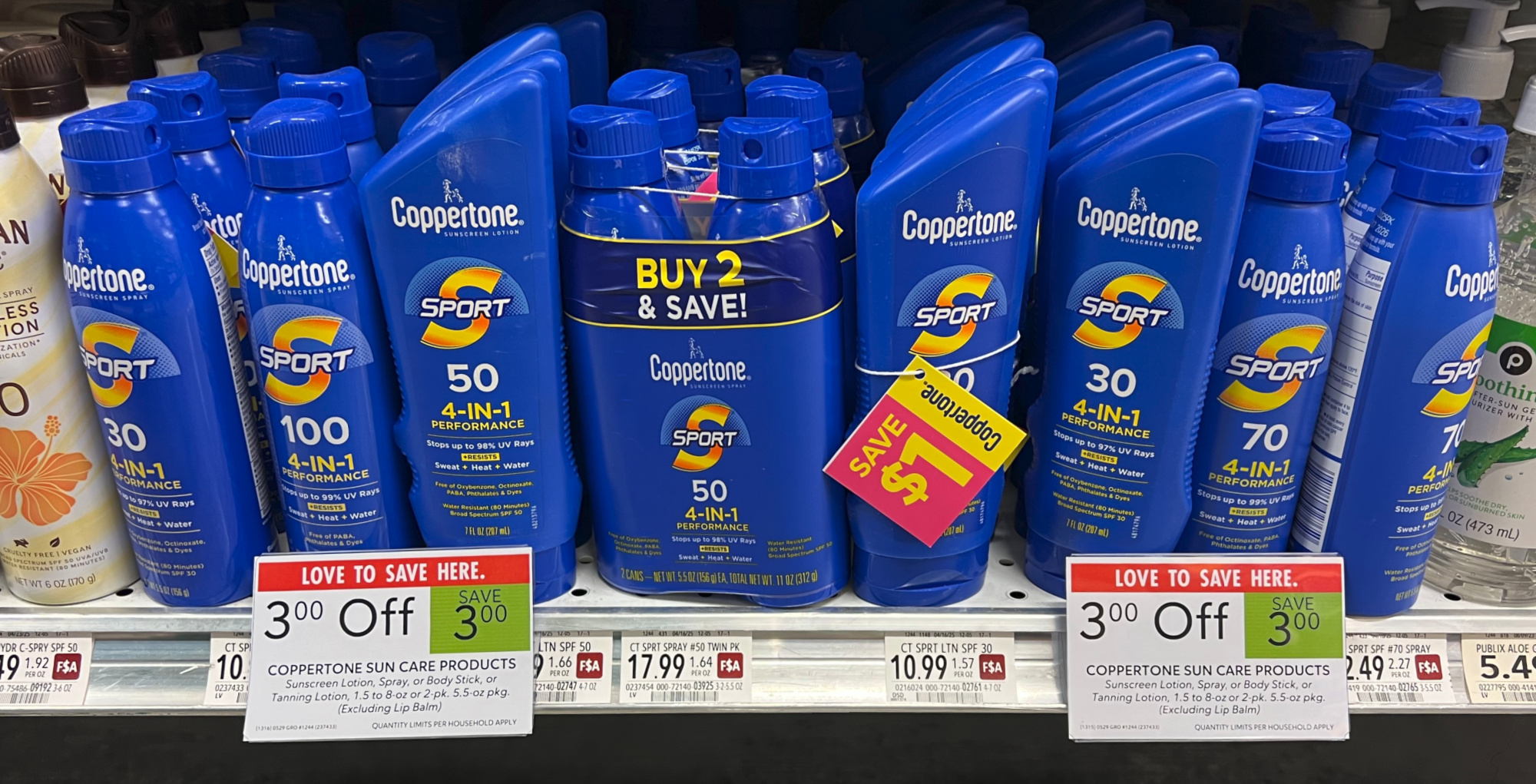 Add a bottle of suncreen to your stash and save BIG. Combine the sale and coupon to get a bottle of Coppertone Sun Care for as little as $5.99 this week at Publix.