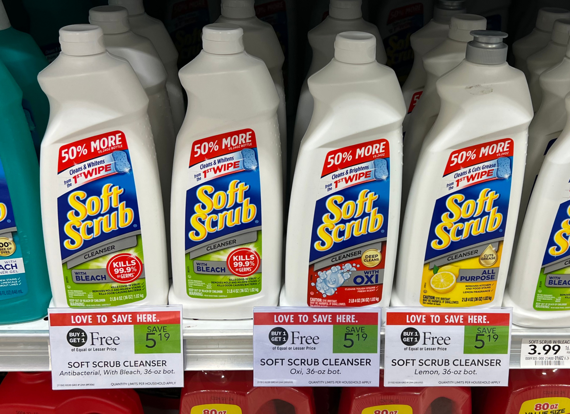 Make sure you take advantage of this deal on Soft Scrub products this week at Publix. Load your cash back offer and get the the big bottles for as little as 60¢ each.
