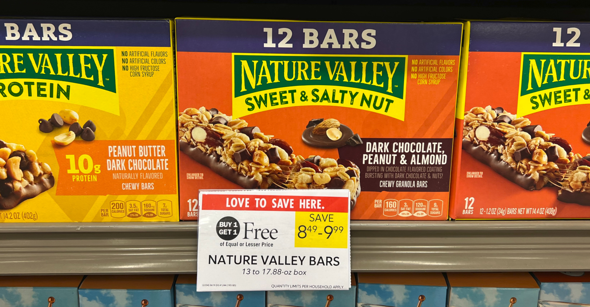 –$1/2 Nature Valley Granola Bars, Protein Bars, Biscuits, Wafers, Soft-Baked Squares, Soft-Baked Muffins, Crunchy Dipped Granola Squares, Savory Nut Crunch, Protein Smoothie, Soft-Baked Breakfast Bars OR Lunch Box (Publix Digital Coupon)