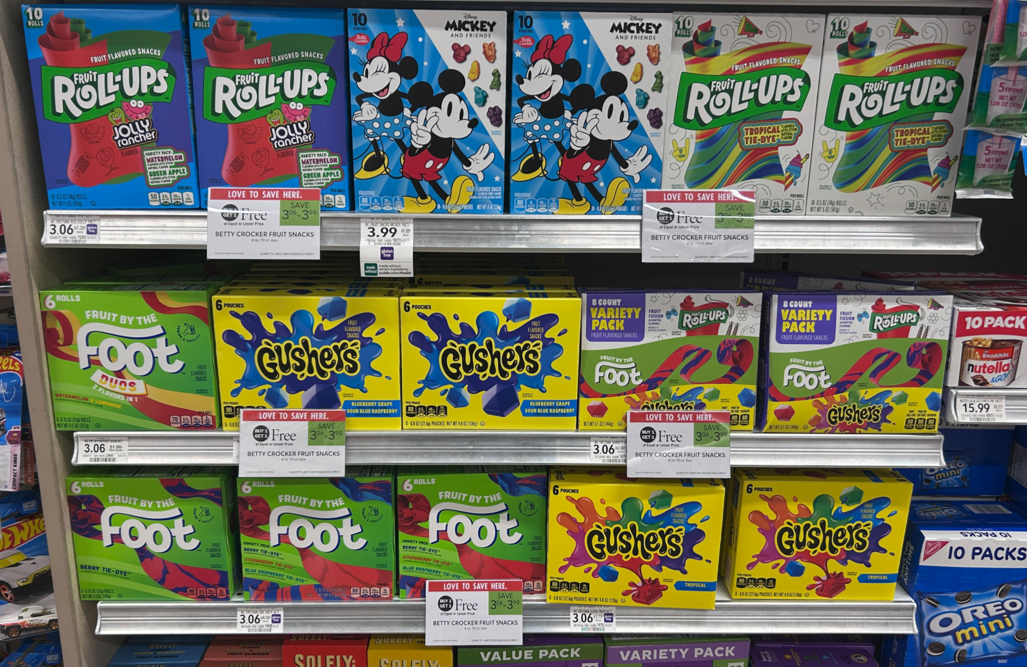 –$1/1 Betty Crocker Fruit Shapes, Fruit by the Foot, Fruit Gushers, Fruit Roll-Ups Fruit Flavored Snacks OR Mott’s Fruit Flavored Snacks (Publix Digital Coupon)