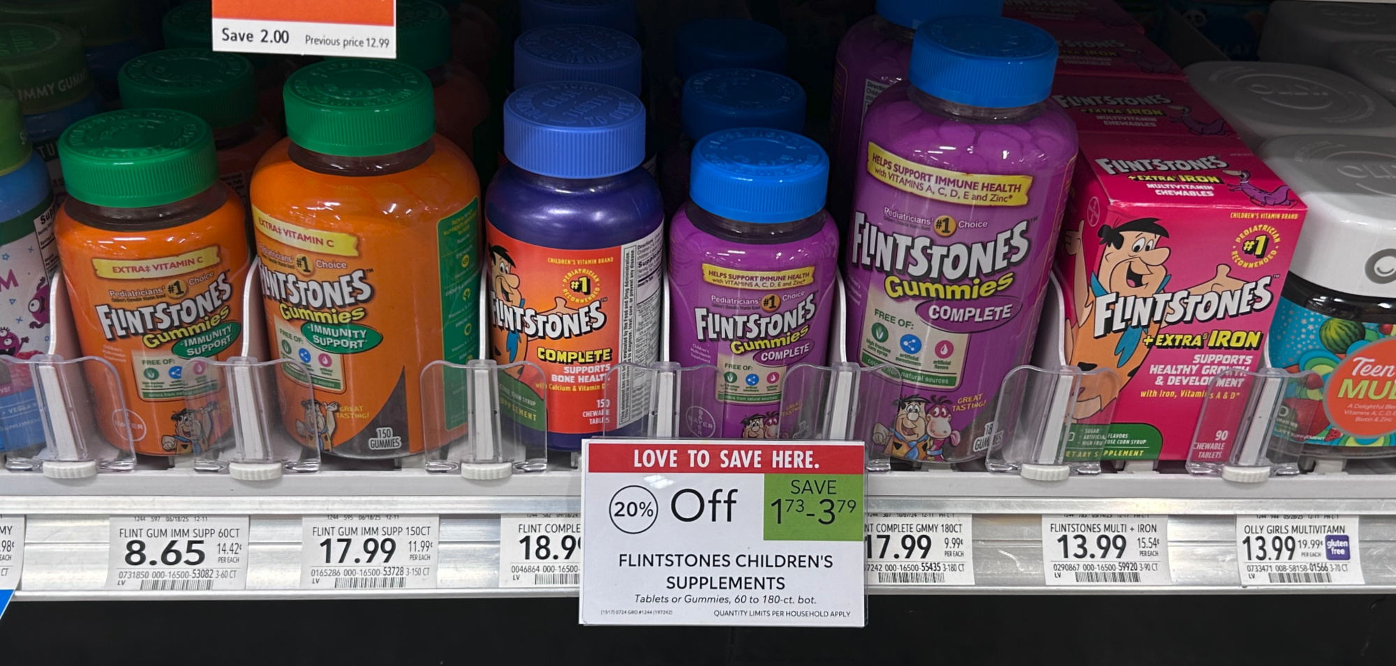 –$2/1 One A Day Kids Multivitamins or Flintstones 60ct (Publix Digital Coupon)