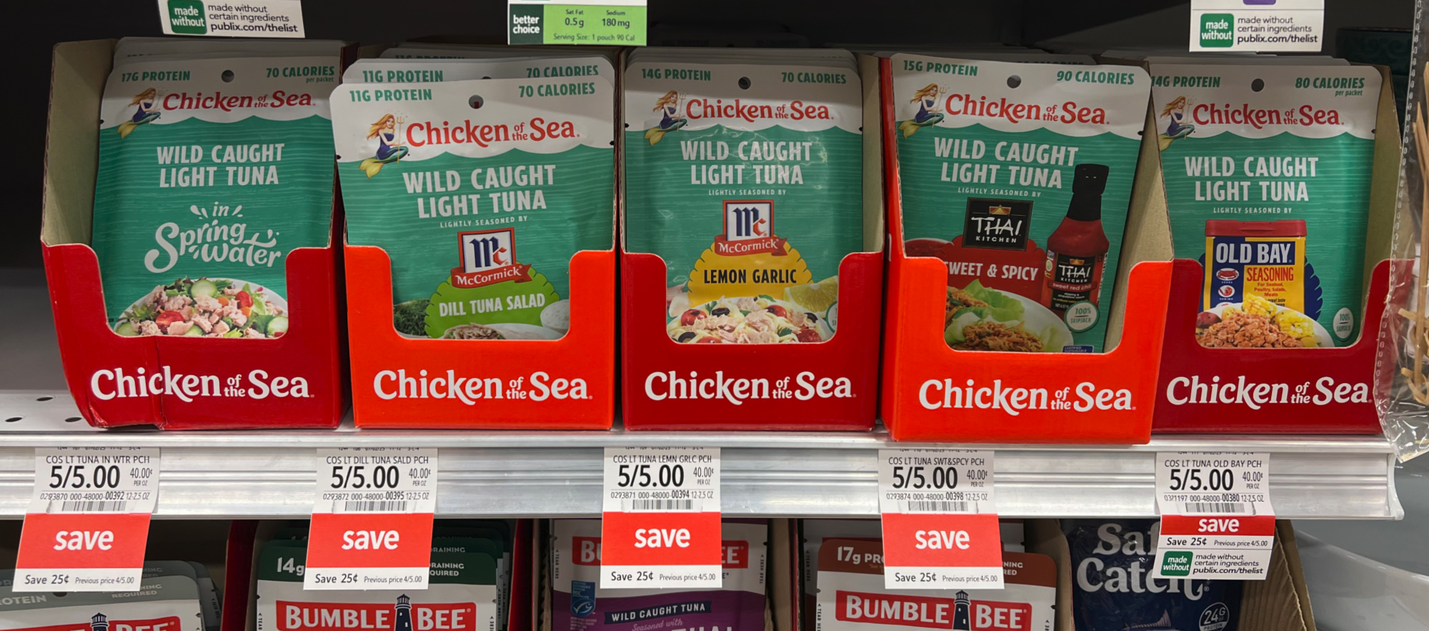 Right now you can pick up Chicken of the Sea Light Tuna Pouches for just 70¢ at Publix. Combine the sale and cash back offer to grab your deal!