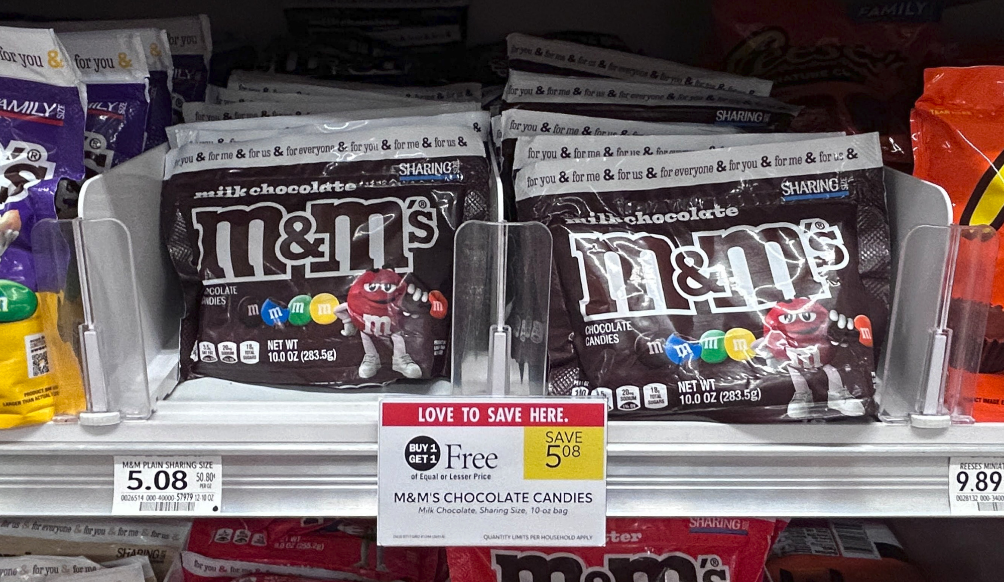 M&M’s Chocolate Candies, Sharing Size, 7.4 to 10.05 oz, BOGO $5.08