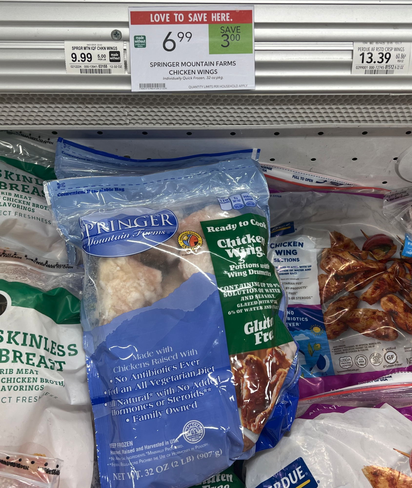 Springer Mountain Farms Chicken Wings, Individually Quick Frozen, 32 oz, $6.99 (reg $9.99)