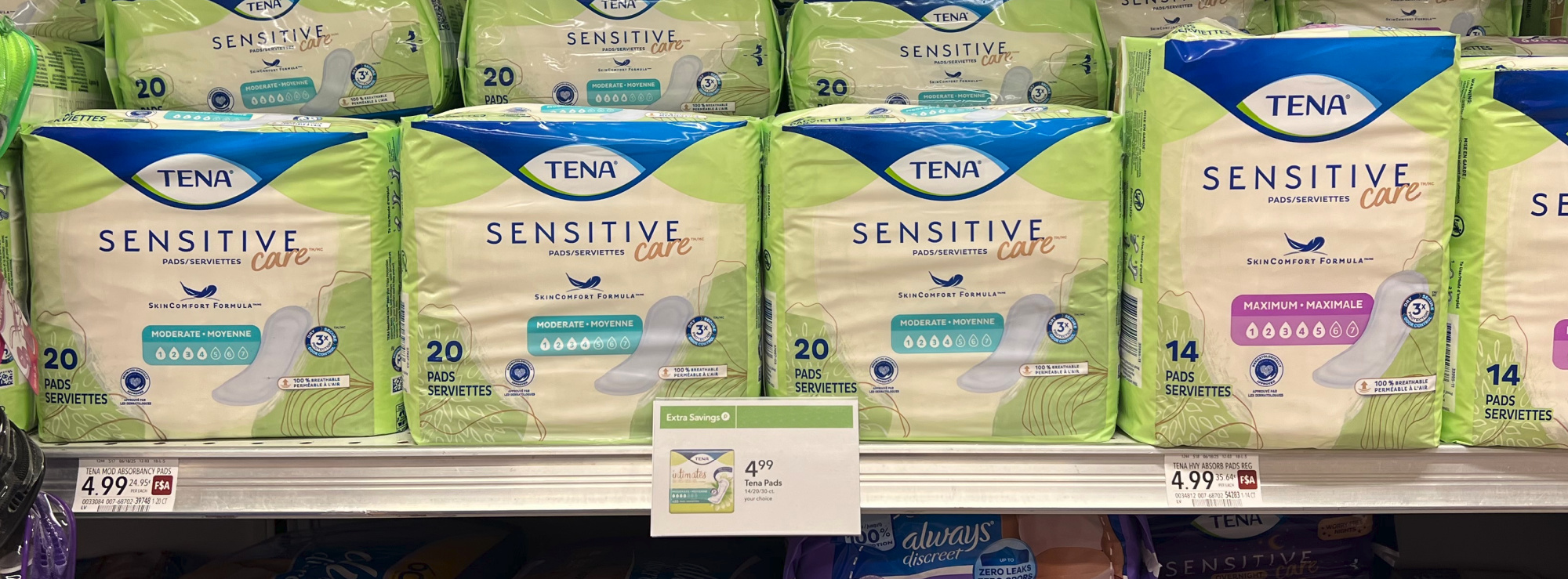 Tena Pads, 14, 20, or 30 ct, $4.99 (reg $6.49)